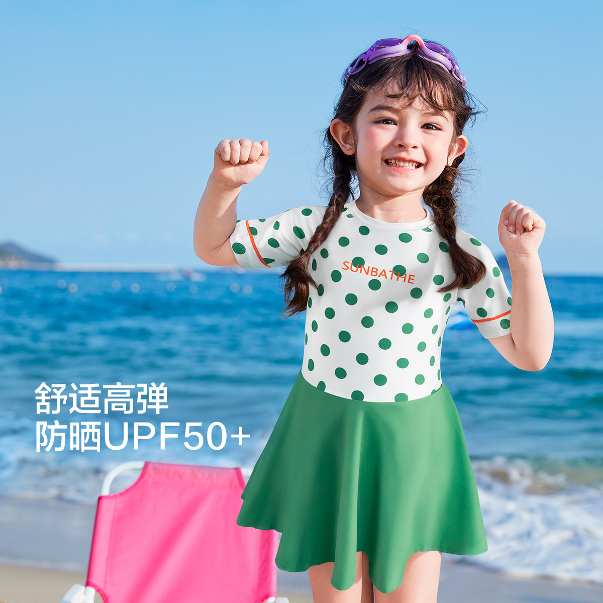 防晒UPF50+女童泳衣儿童泳装小童宝宝防晒连体高弹运动撞色 446277