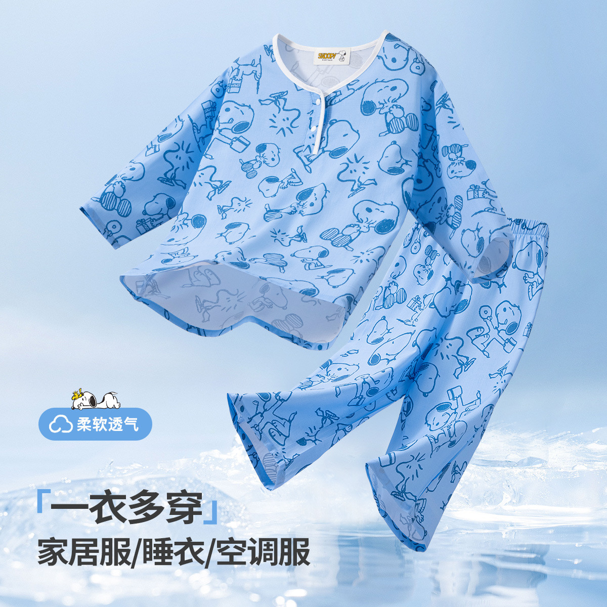 【透气绵绸】薄款儿童睡衣家居服男童七分袖套装中童空调服套装 458456