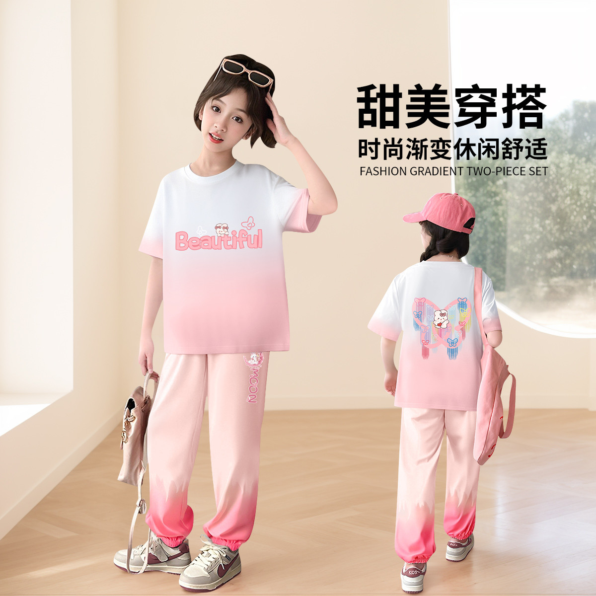 女童夏季渐变可爱套装舒适T恤运动百搭裤中大童 388943