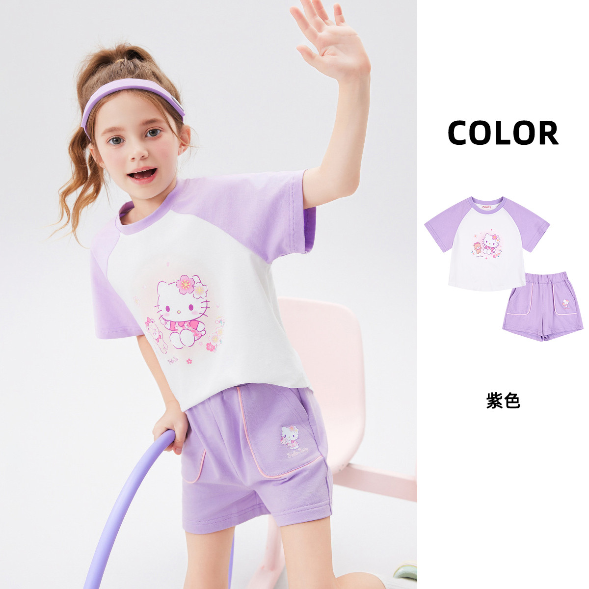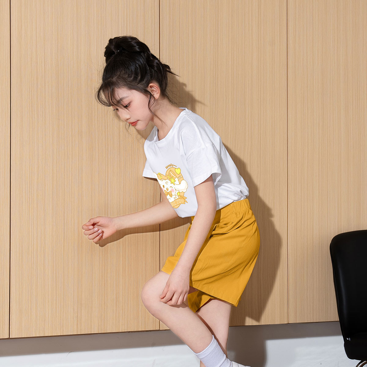 夏季女童洋气卡通短袖T恤短裤中大童纯棉休闲套装 727439