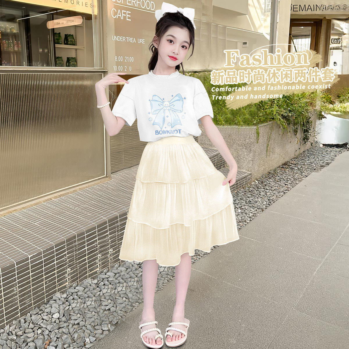 【甜美短袖T恤+公主蛋糕裙】女童裙子夏季中大童洋气女孩童半身裙 520591