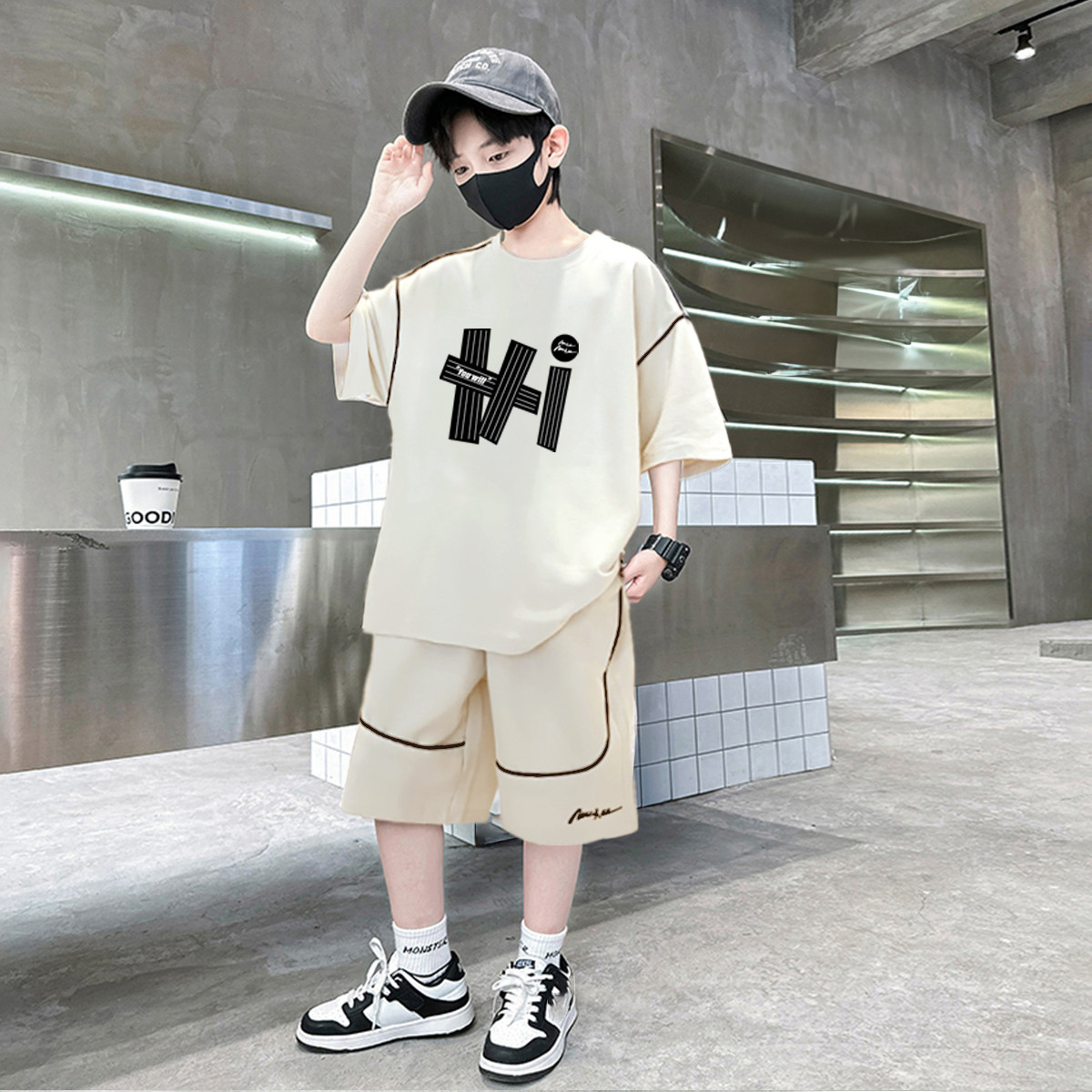【透气华夫格】童装男童套装夏季中大童男孩帅气时尚两件套潮 167443