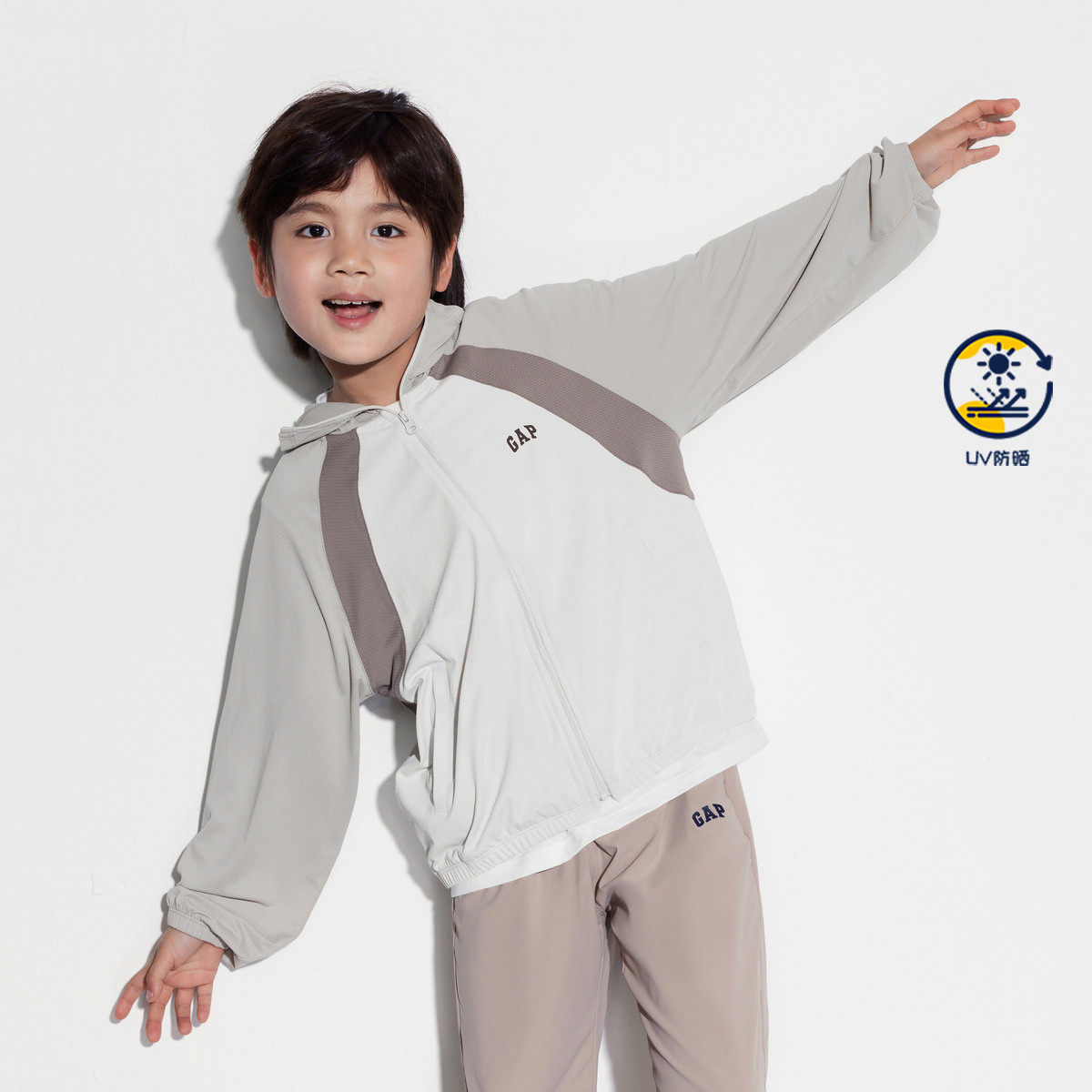 Gap男童2024春秋季撞色UPF50+防晒外套儿童装轻薄连帽衫465974 169946