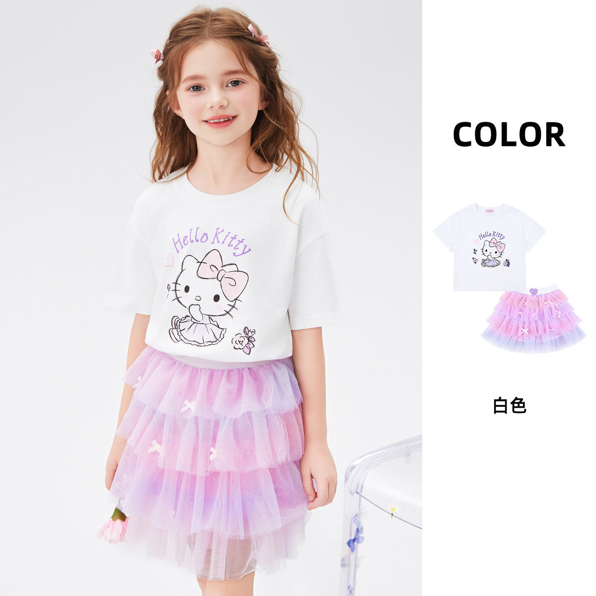 【女童夏季网纱两件套】2025款凯蒂猫中大童装tutu蓬蓬裙 499998