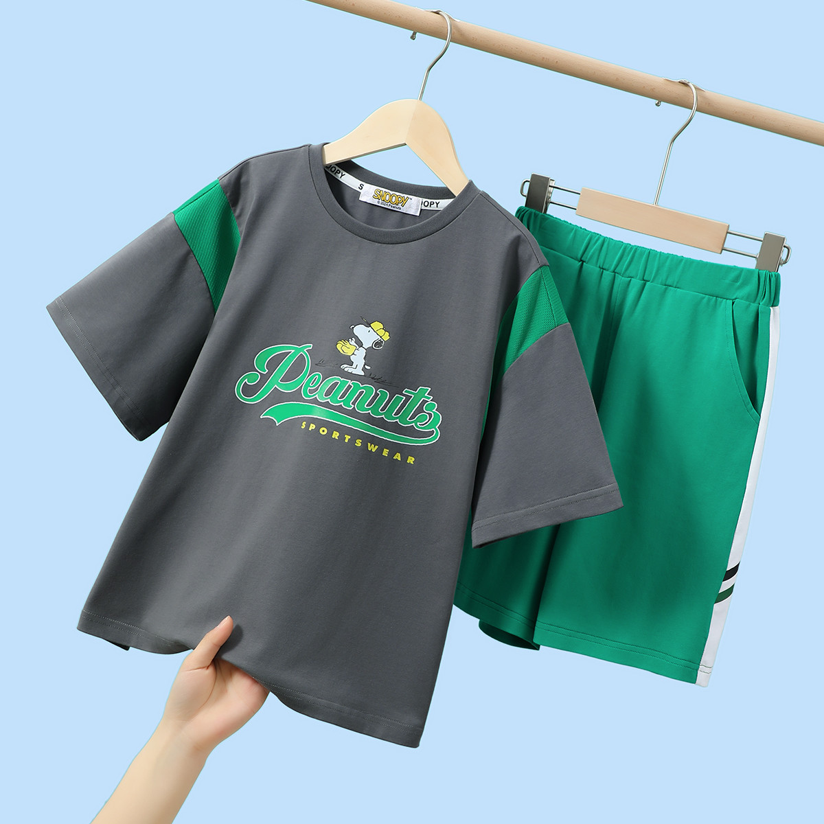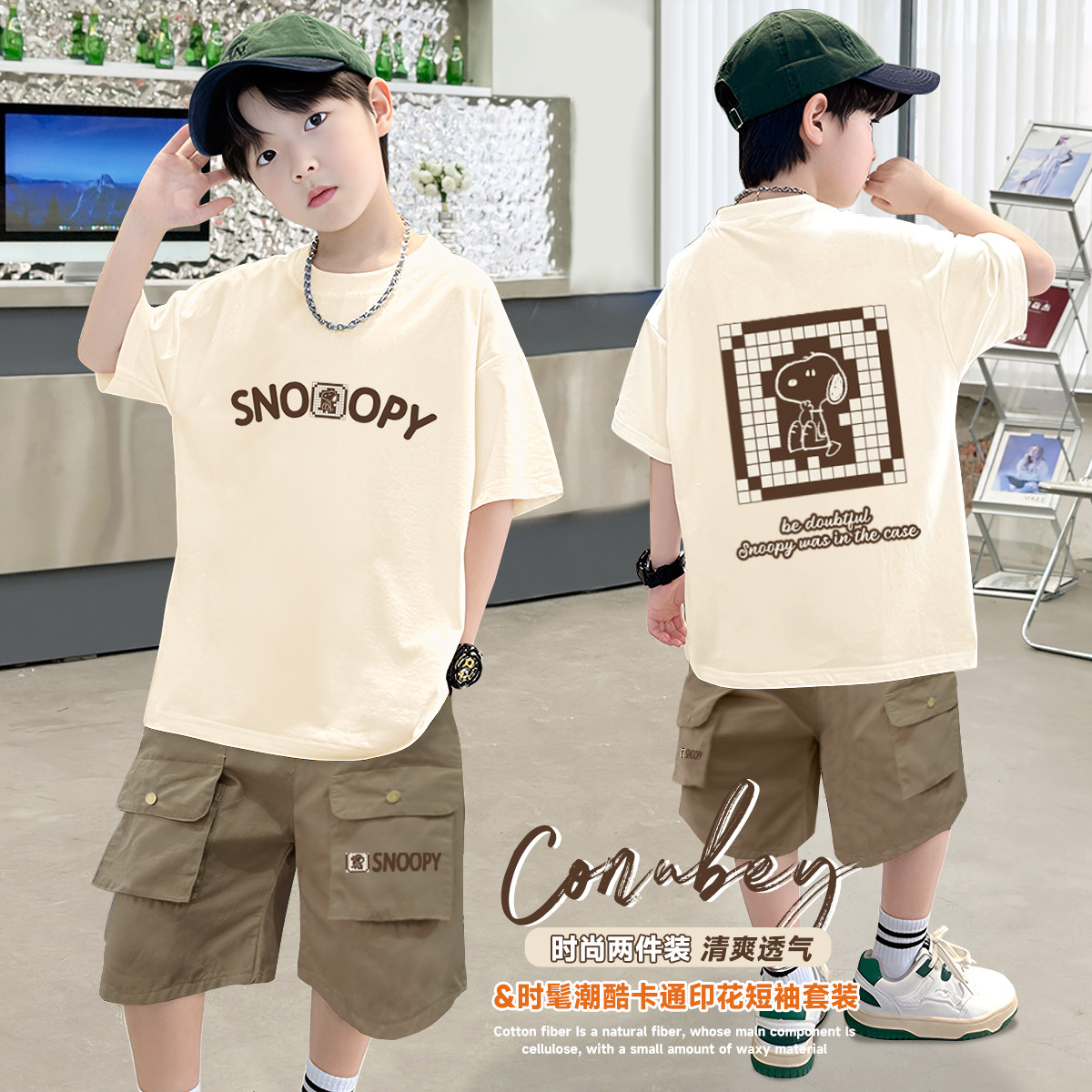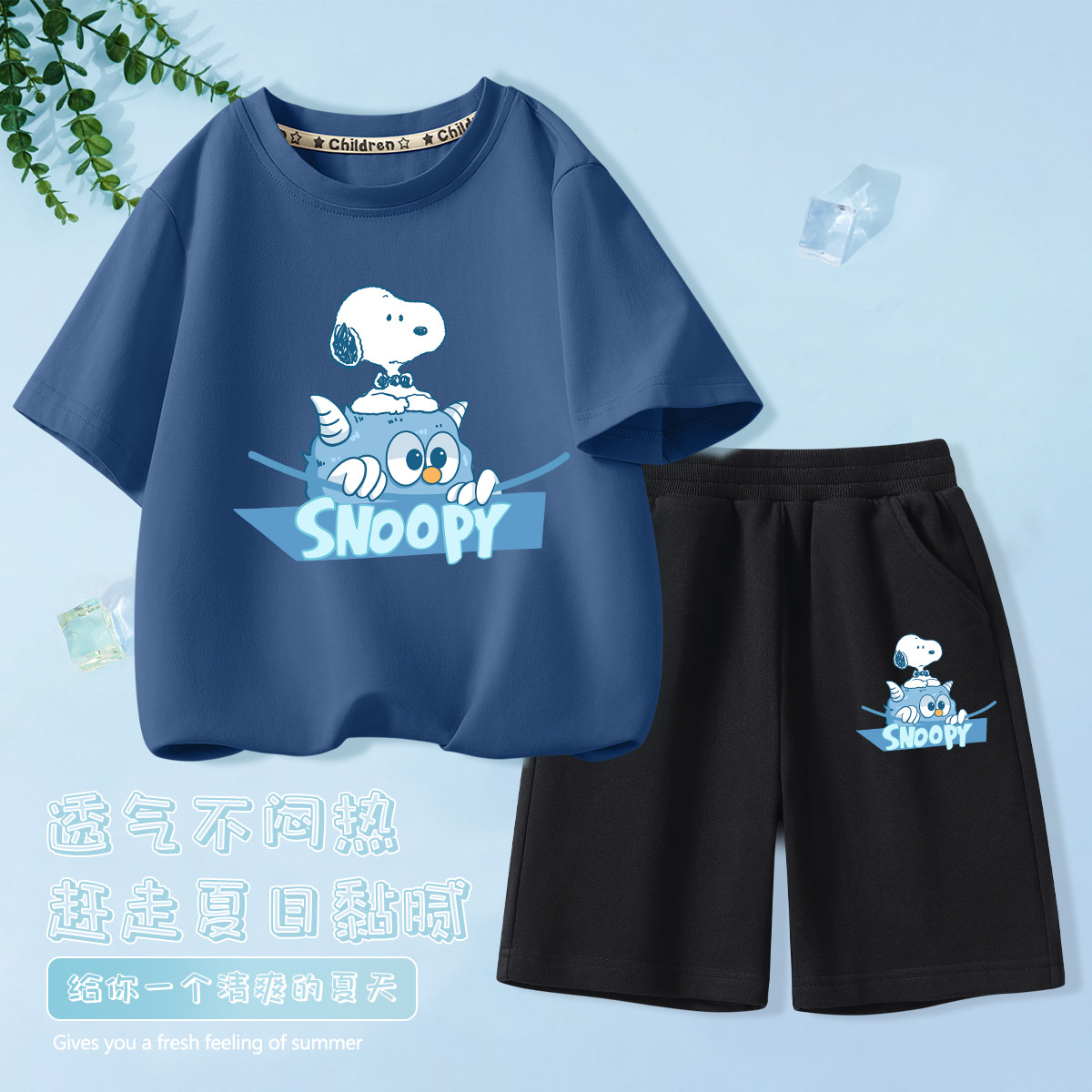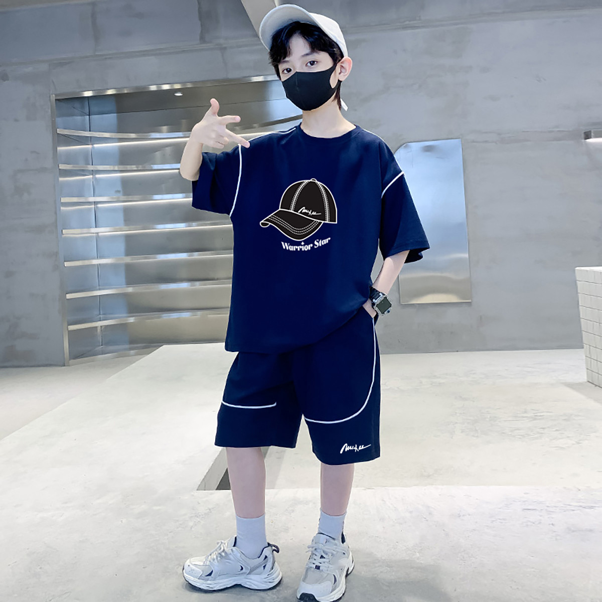 儿童纯棉套装25年夏季运动短袖t恤中大童薄款短裤儿童两件套潮 049887