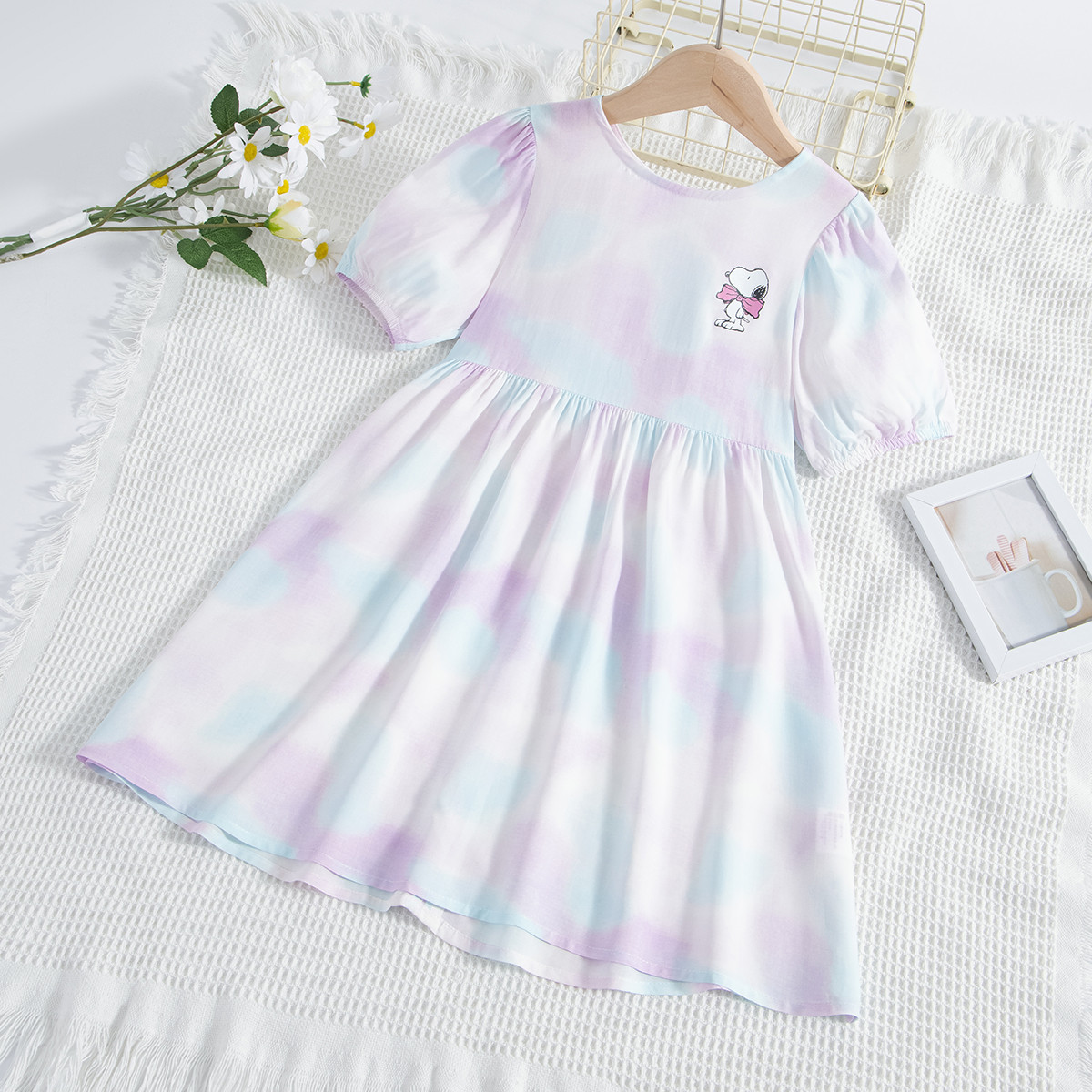 【彩印扎染泡泡袖连衣裙】2025年夏季女童裙子田园风碎花裙 140248