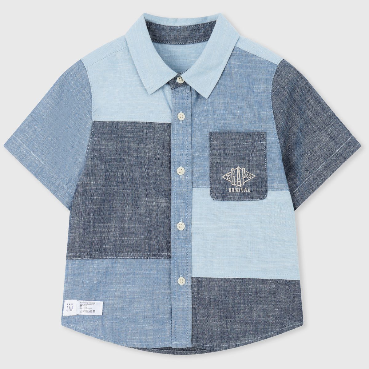 Gap男幼童2024夏季兰精天丝满印花衬衫儿童短袖上衣465970 374746