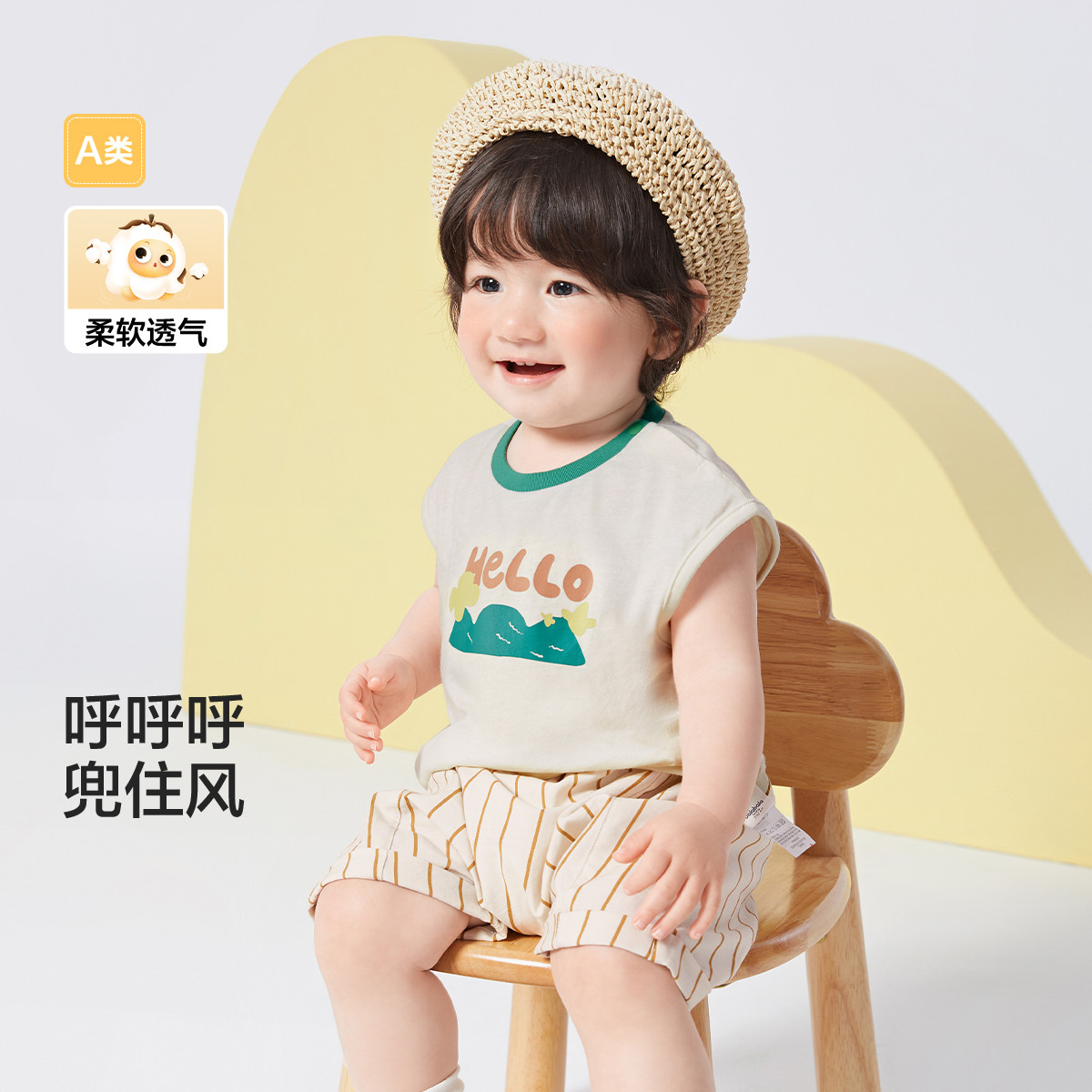 透气婴儿背心儿童t恤短袖男童夏季薄款婴幼儿女童外穿柔软上衣 494853