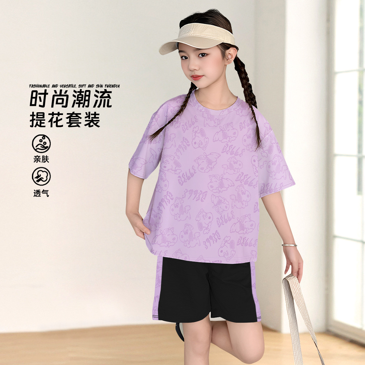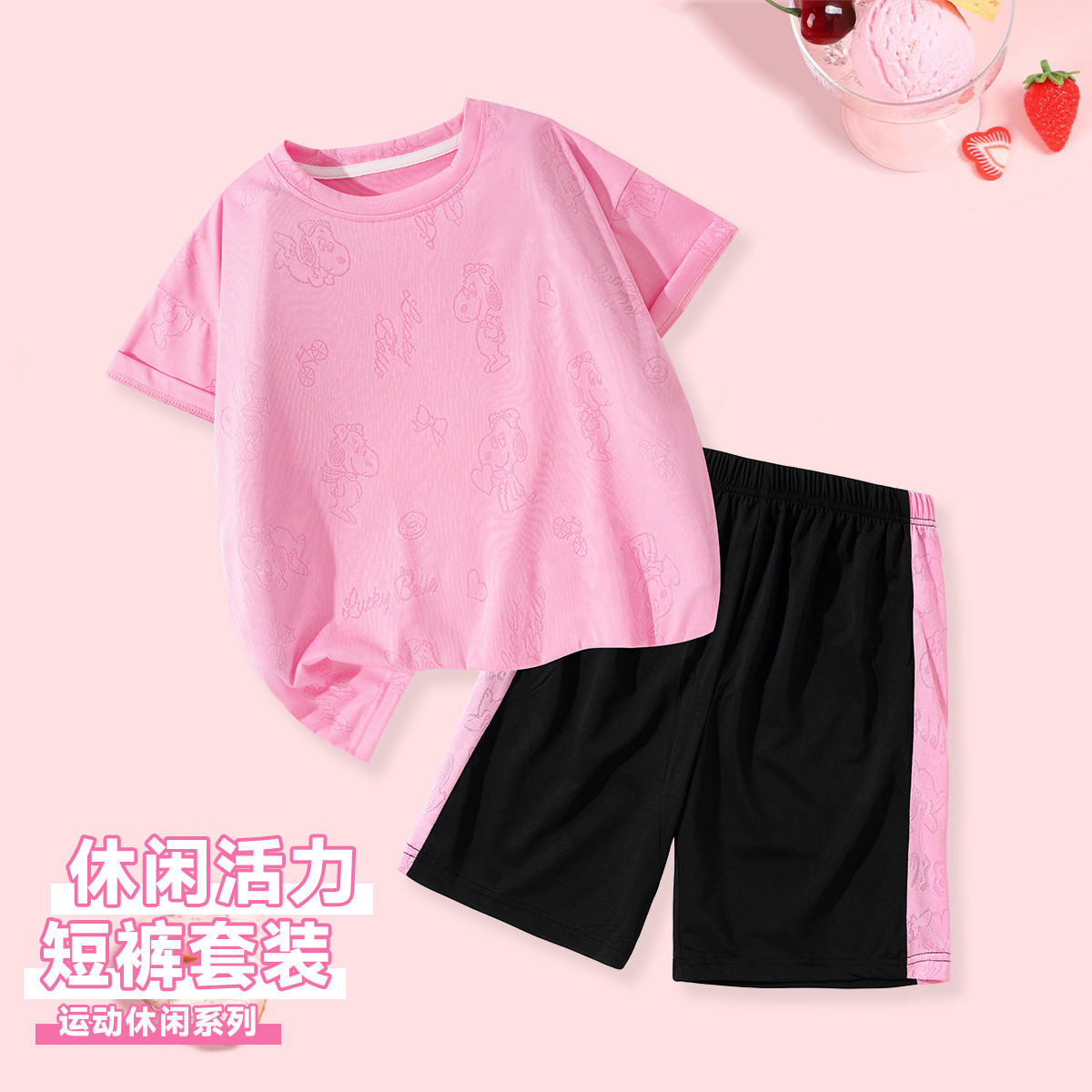【福利特卖】夏季女童休闲套装百搭儿童运动短裤短袖中大童两件套 212639