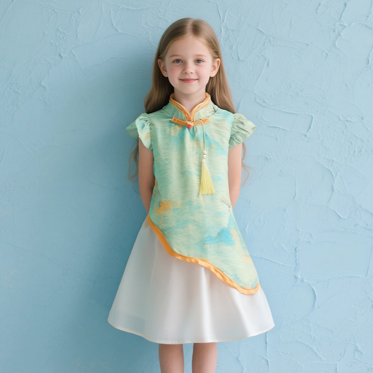 【女童国风连衣裙】夏季爆款中大儿童夏装亲肤透气长裙甜美可爱 569119
