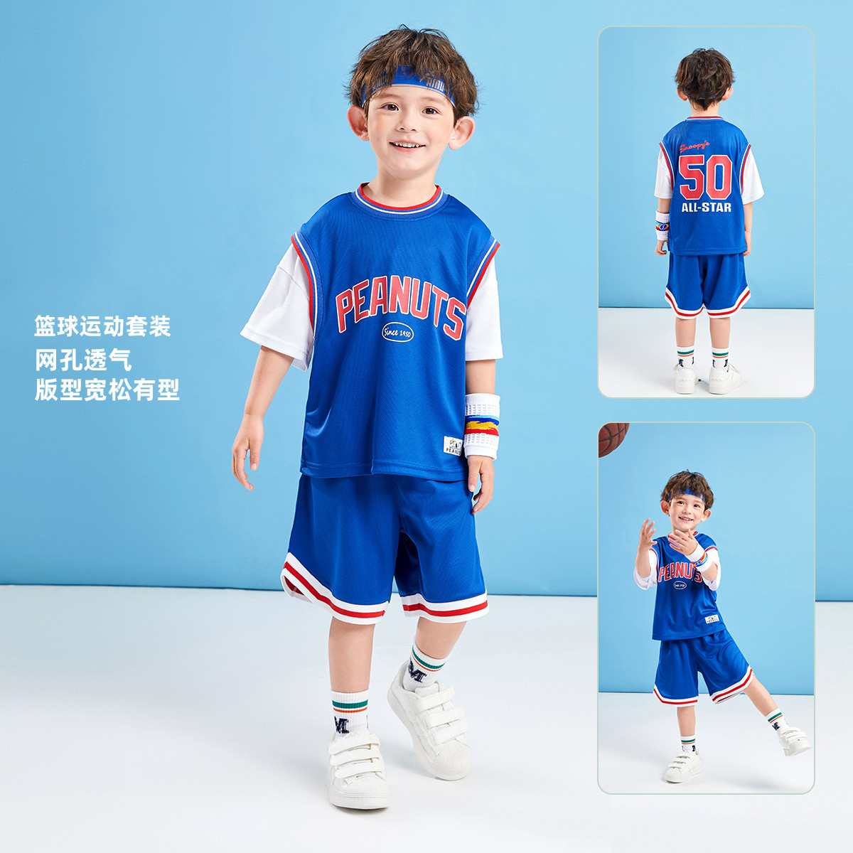 【儿童套装】25年夏季小中大童篮球服男女童透气运动短裤两件套 641951
