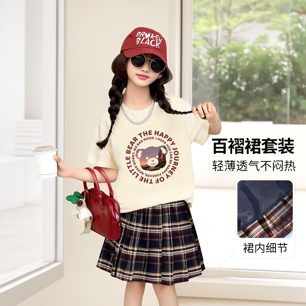 夏季女童时尚百搭亲肤舒适短袖T恤裙子两件套中大童装 659599
