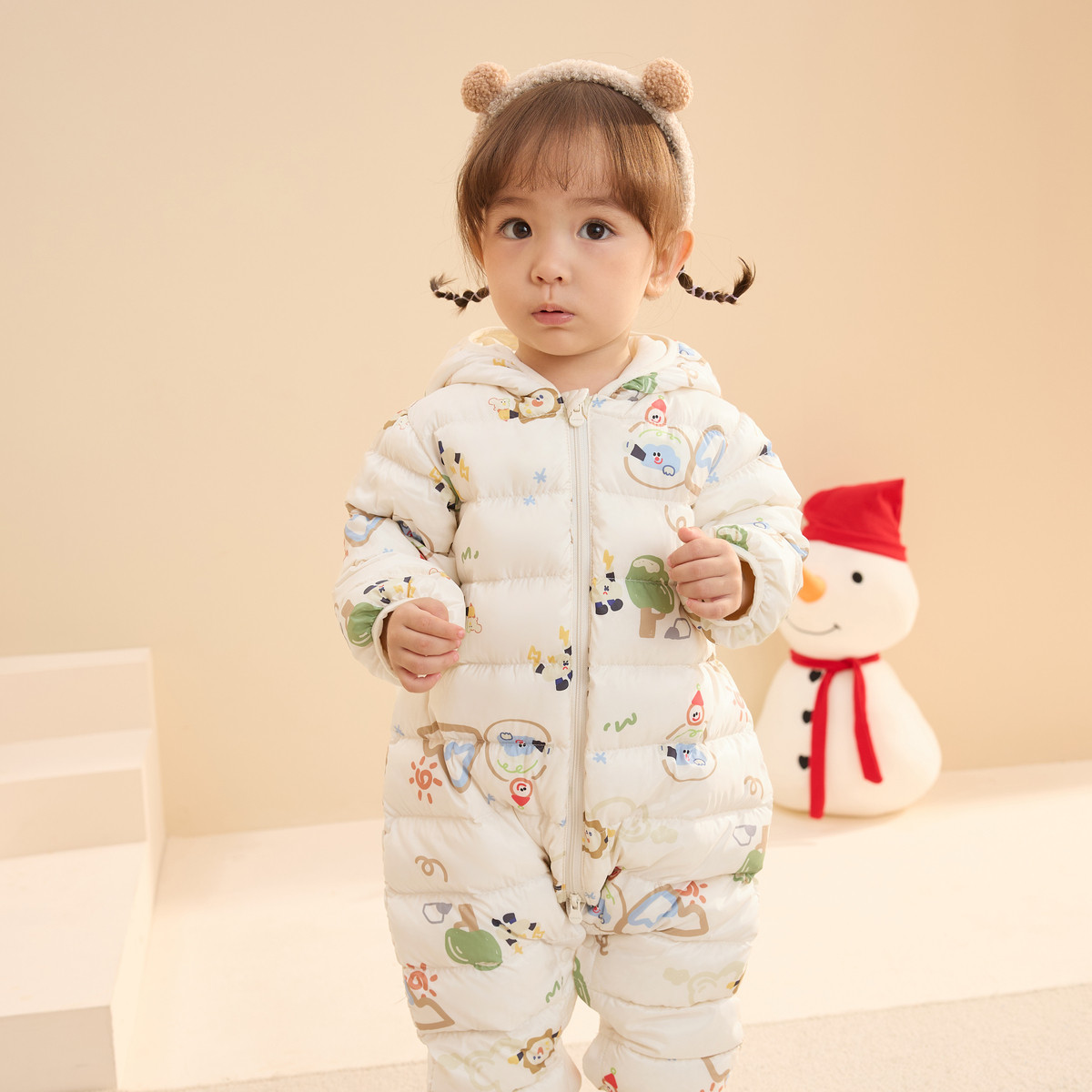 卡通立体婴儿连帽羽绒服男童女童连体衣婴幼哈衣爬服秋冬款宝宝 193669
