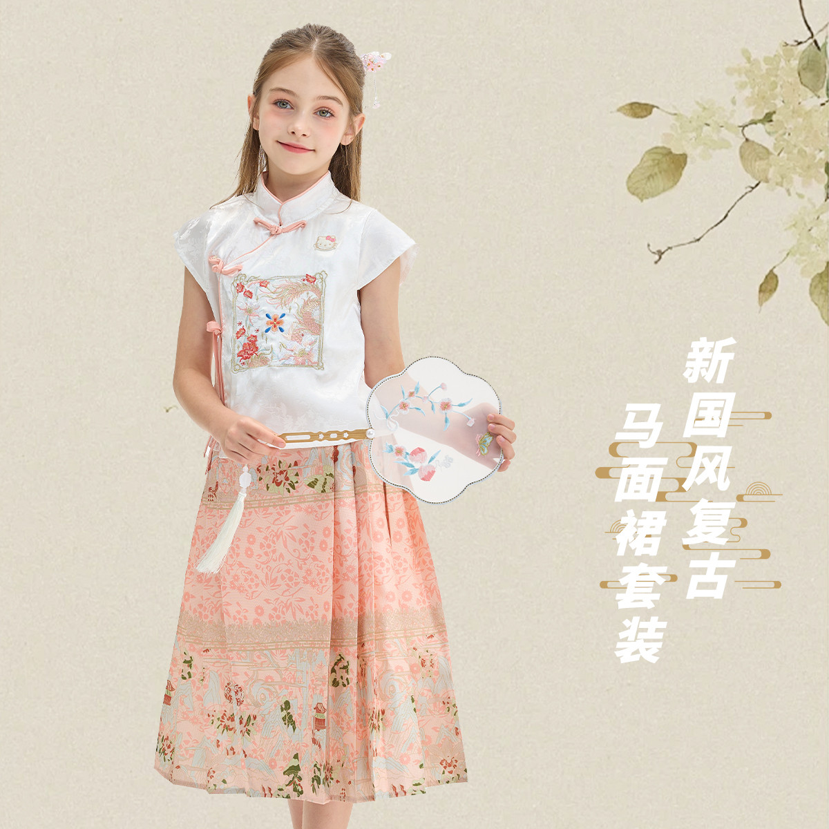【国潮风汉服裙】夏季无袖清爽儿童马面裙女孩套装中式高端裙子 160065
