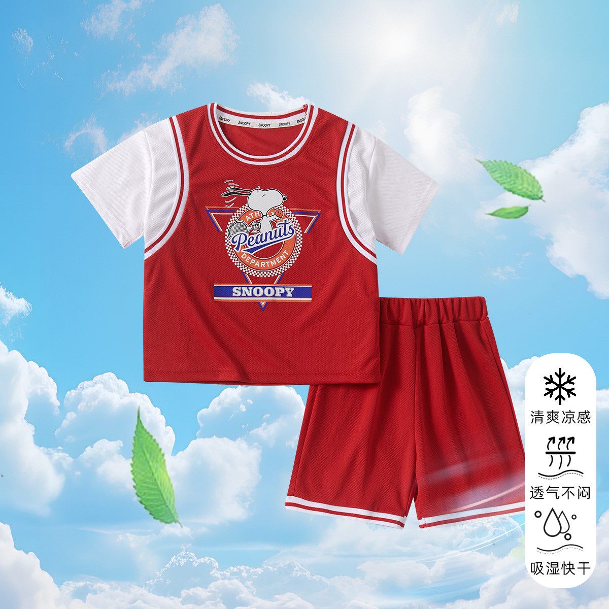 【网眼透气运动套装】男童训练服儿童短袖短裤套装假两件速干套装 262616