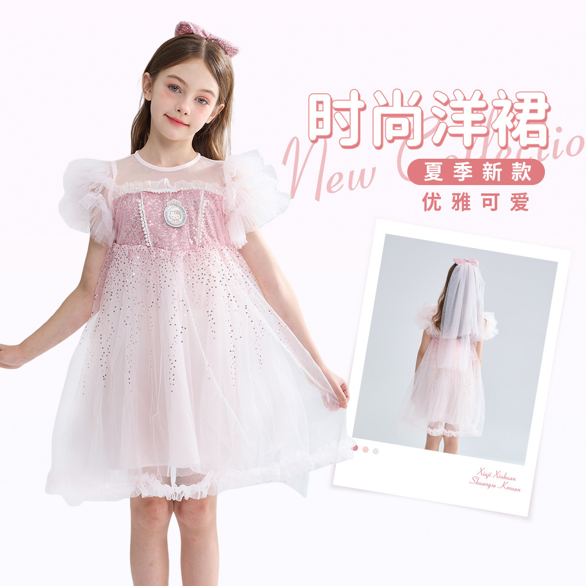 夏季儿童连衣裙亮片公主裙子清凉透气蓬蓬女孩纱婴幼童宝宝裙礼服 123201