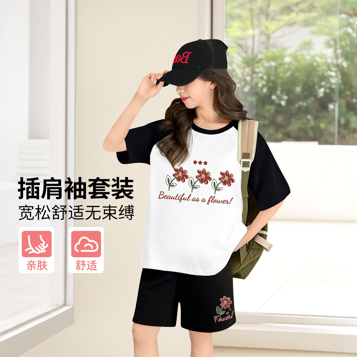 童装女童套装24夏季大童少女百搭短袖山本裤两件套薄款夏装潮 042195