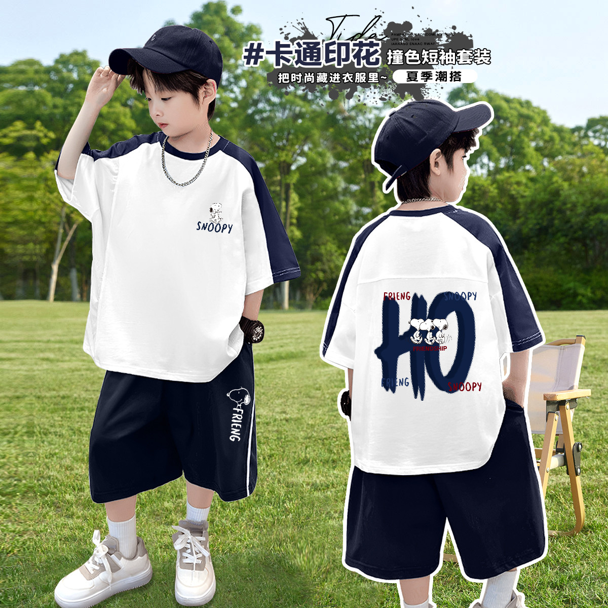 2025夏季男童中大童休闲套装两件套短袖潮流T恤短裤运动百搭 395359