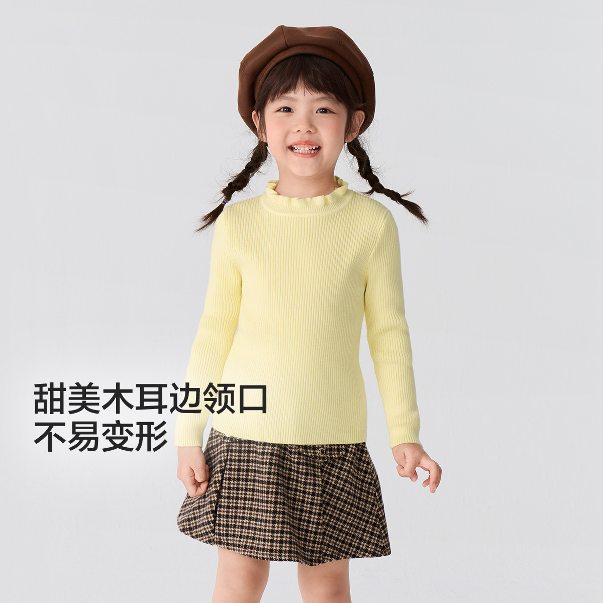 儿童毛衣简约百搭打底衫女童秋装针织衫小童中大童木耳边不易变形 983365