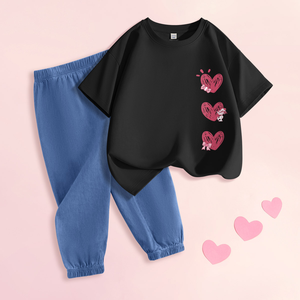 女童套装2025年夏季运动短袖t恤中大童仿牛仔裤儿童两件套薄 303967