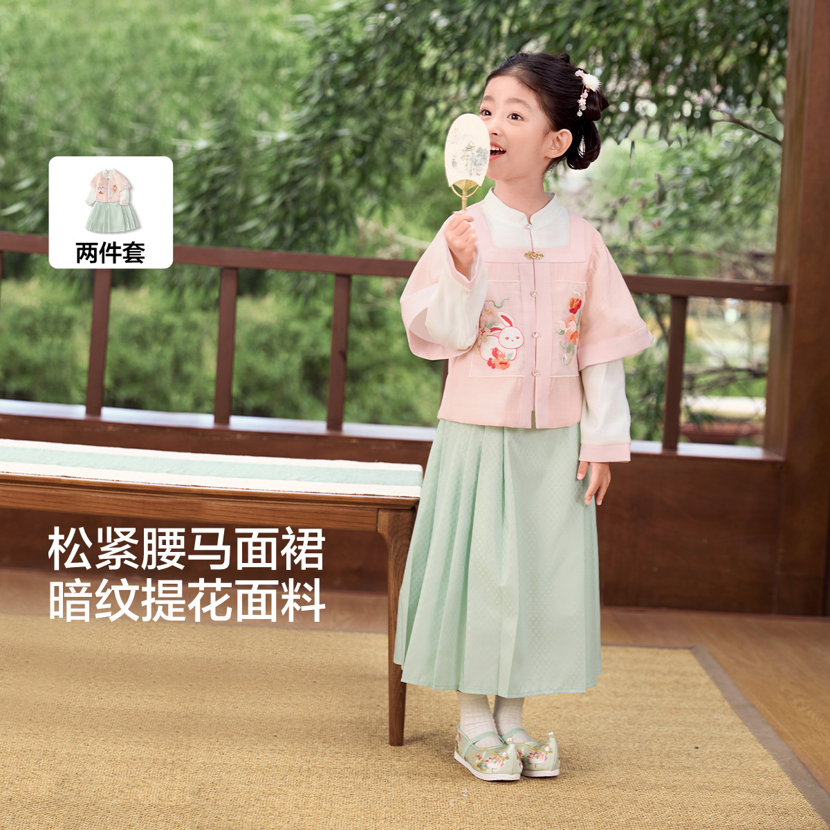 明制国风汉服马面裙两件套女童儿童裙子女小童长袖套装春秋出游季 992645