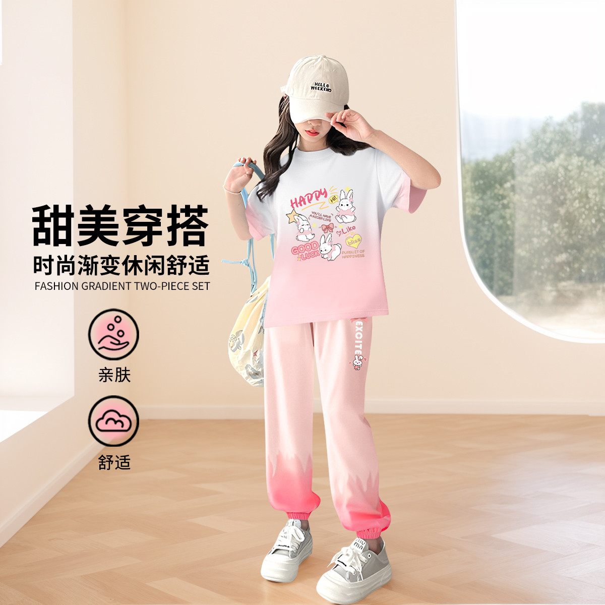 女童夏季渐变可爱套装舒适T恤运动百搭裤中大童 397135