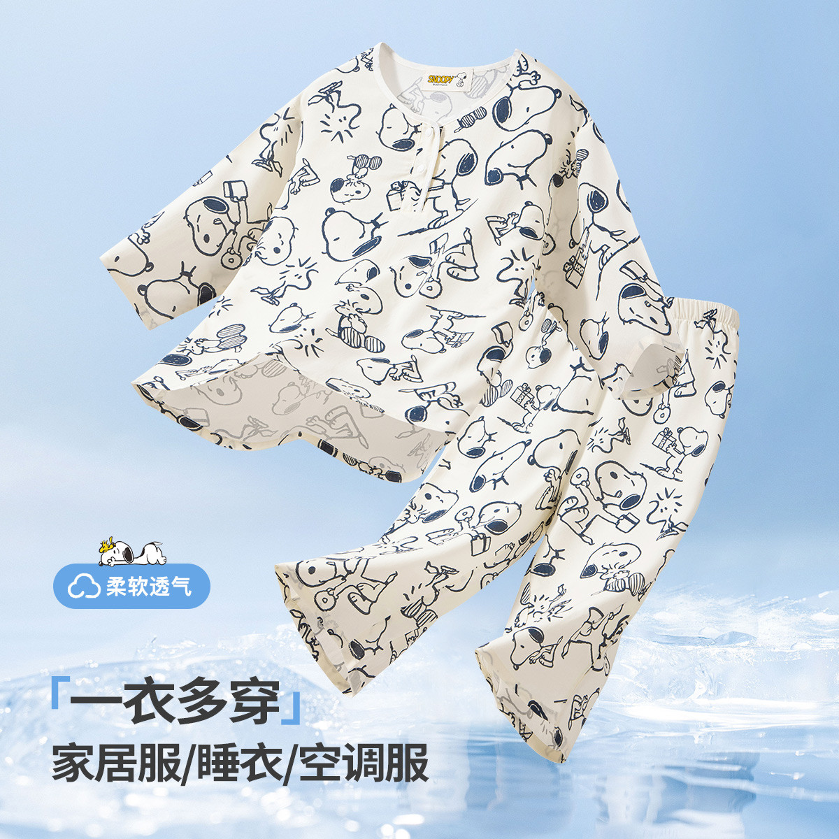 【透气绵绸】薄款儿童睡衣家居服男童七分袖套装中童空调服套装 454360