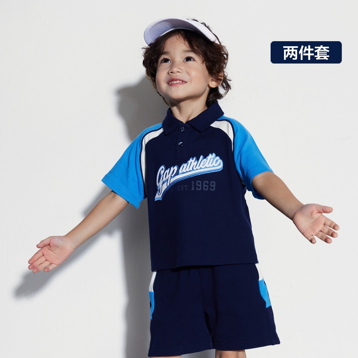 Gap男幼童2024春秋季款撞色Polo短袖T恤短裤运动套装儿童装465417 699226