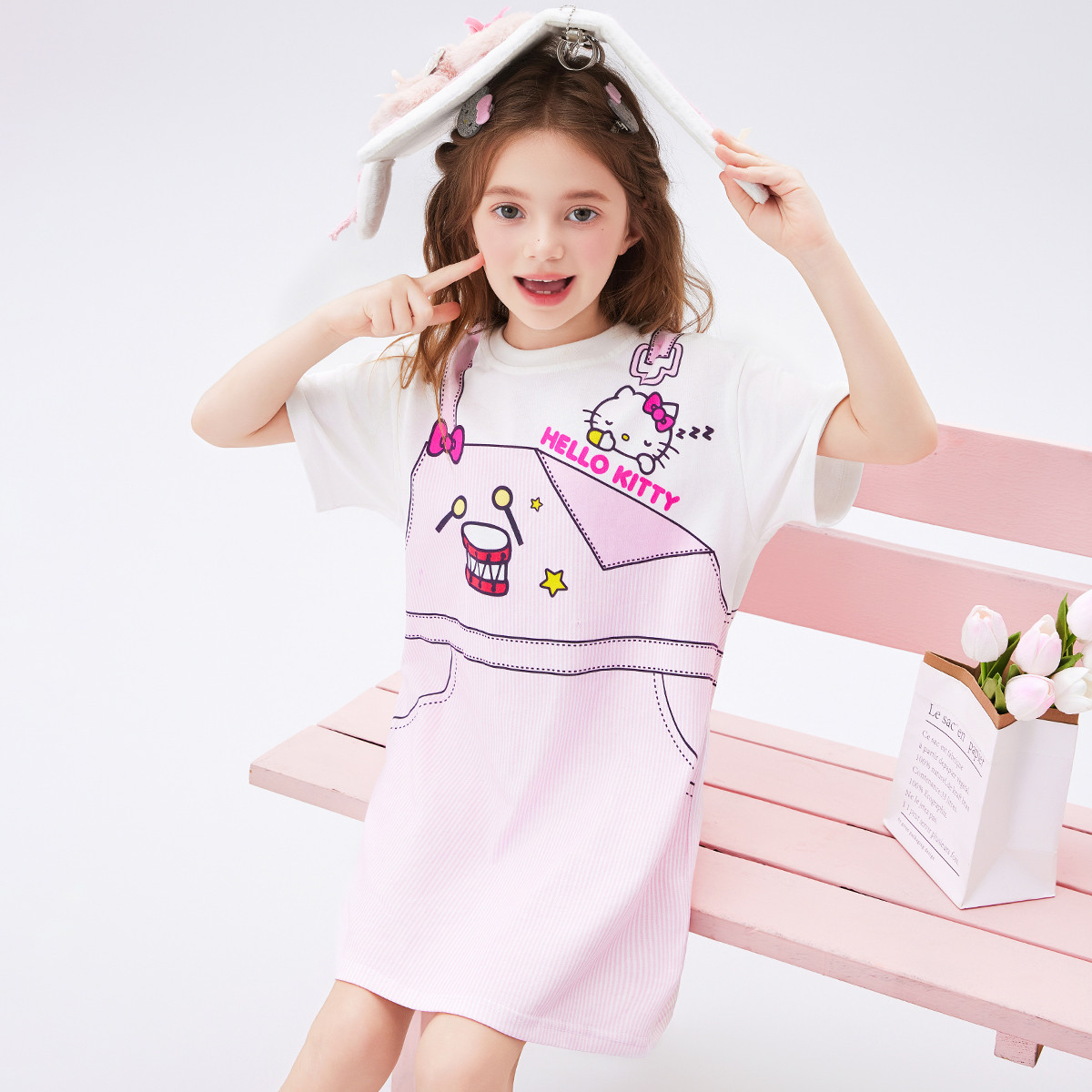 儿童夏季连衣裙2025款弹力罗纹圆领仿假两件印花设计中大童装 493982