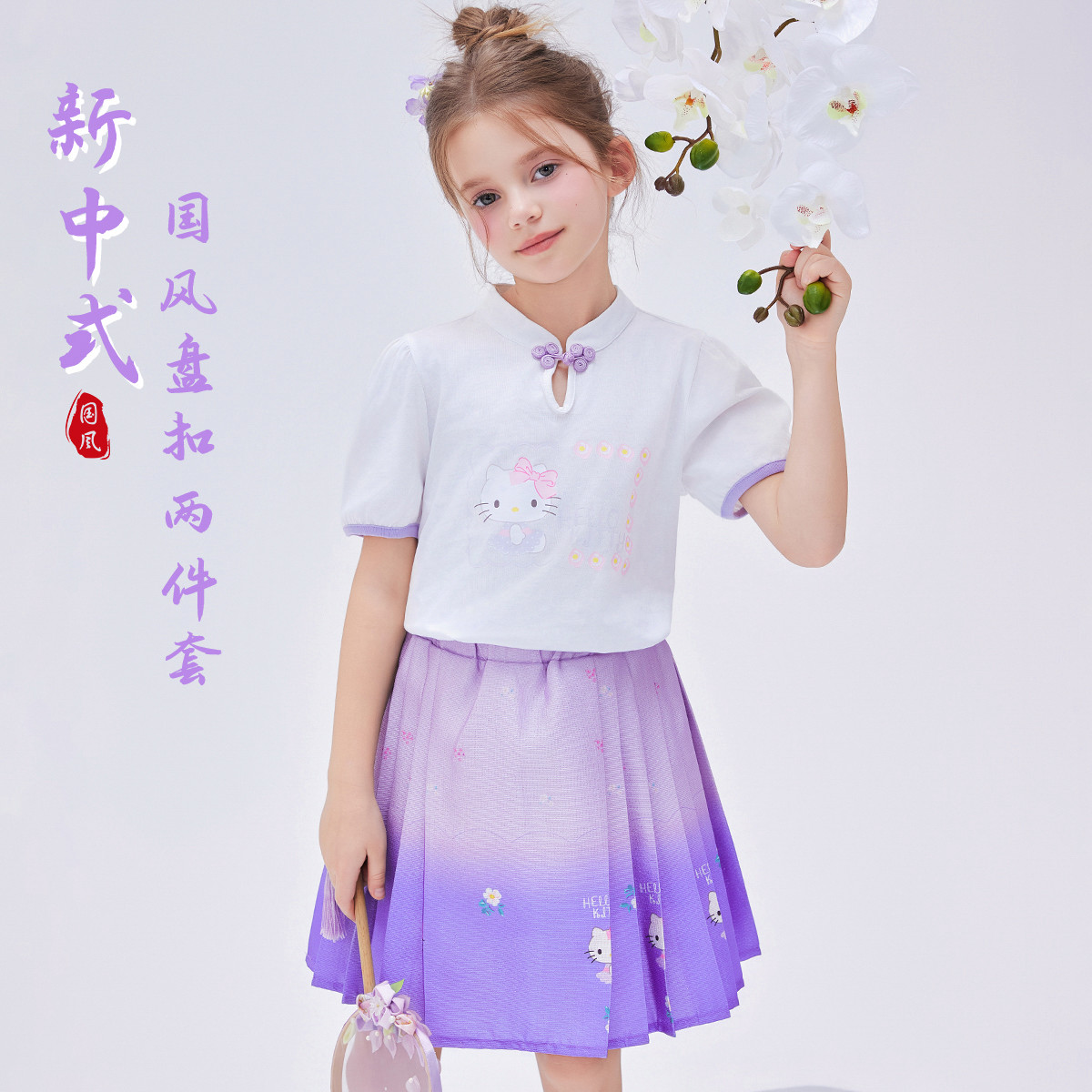 【新中式国风盘扣套装】2025款女童夏季卡通上衣+裙子两件套 489886