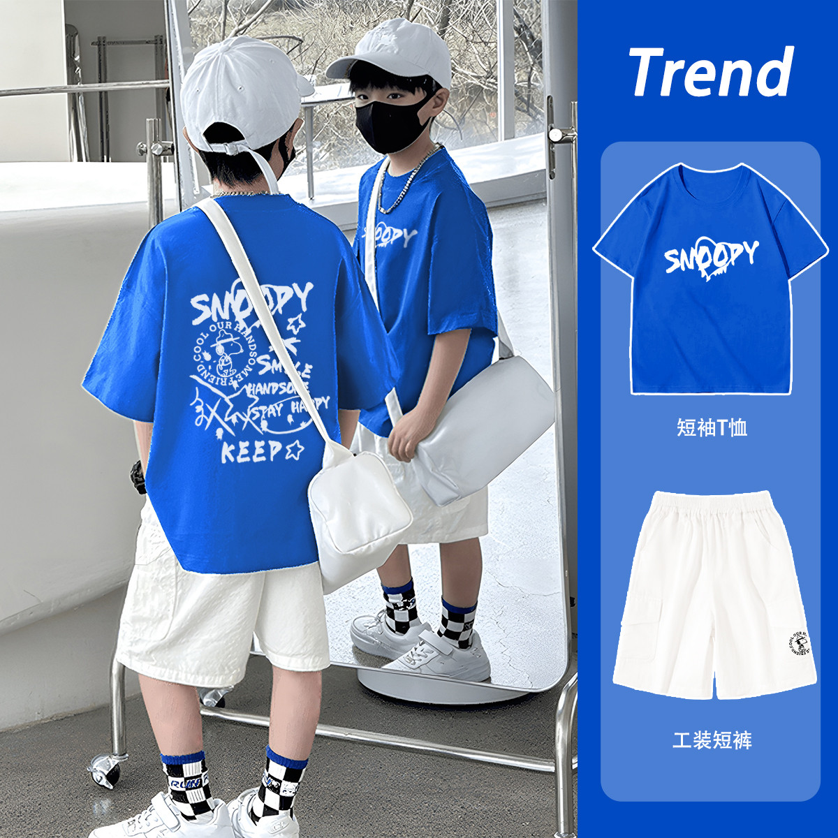 男童休闲套装2025夏季亲肤舒适短袖潮流工装裤百搭儿童两件套 555103