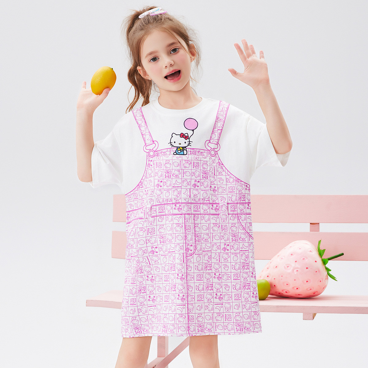 【100%棉】女童夏季连衣裙2025款女宝仿假两件印花T恤裙 510366