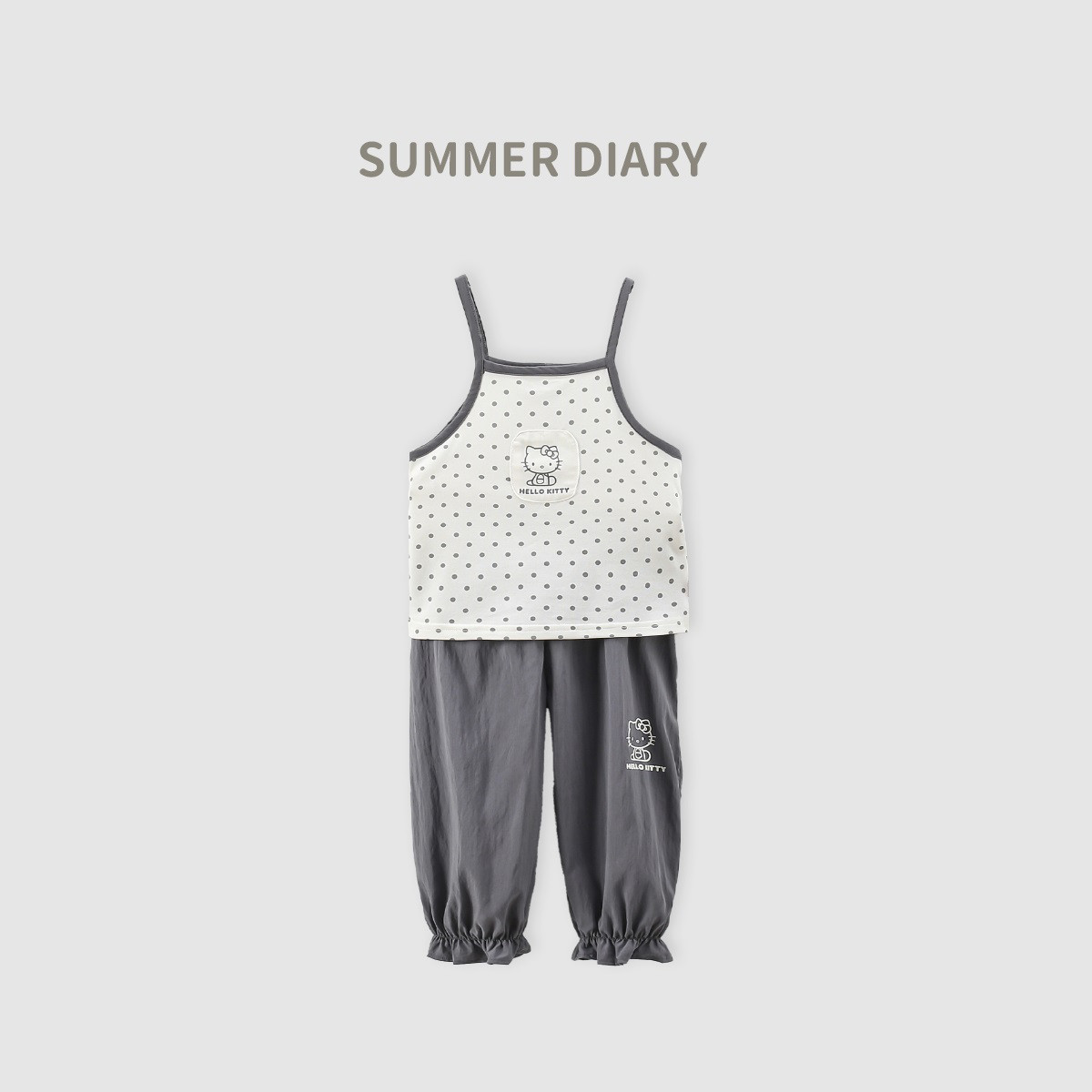 【斑点吊带衫冰丝长裤套装】2024年夏季婴幼女童可爱两件套 890398