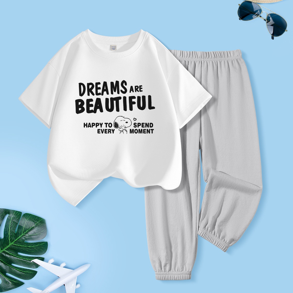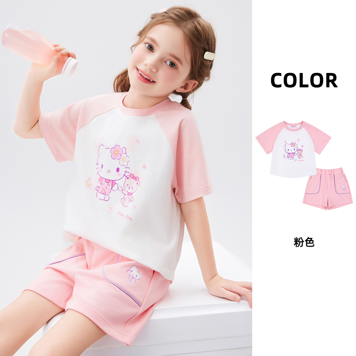 不粘人305H抗菌儿童睡衣男女童家居服纯棉短袖T恤套装夏季 743941