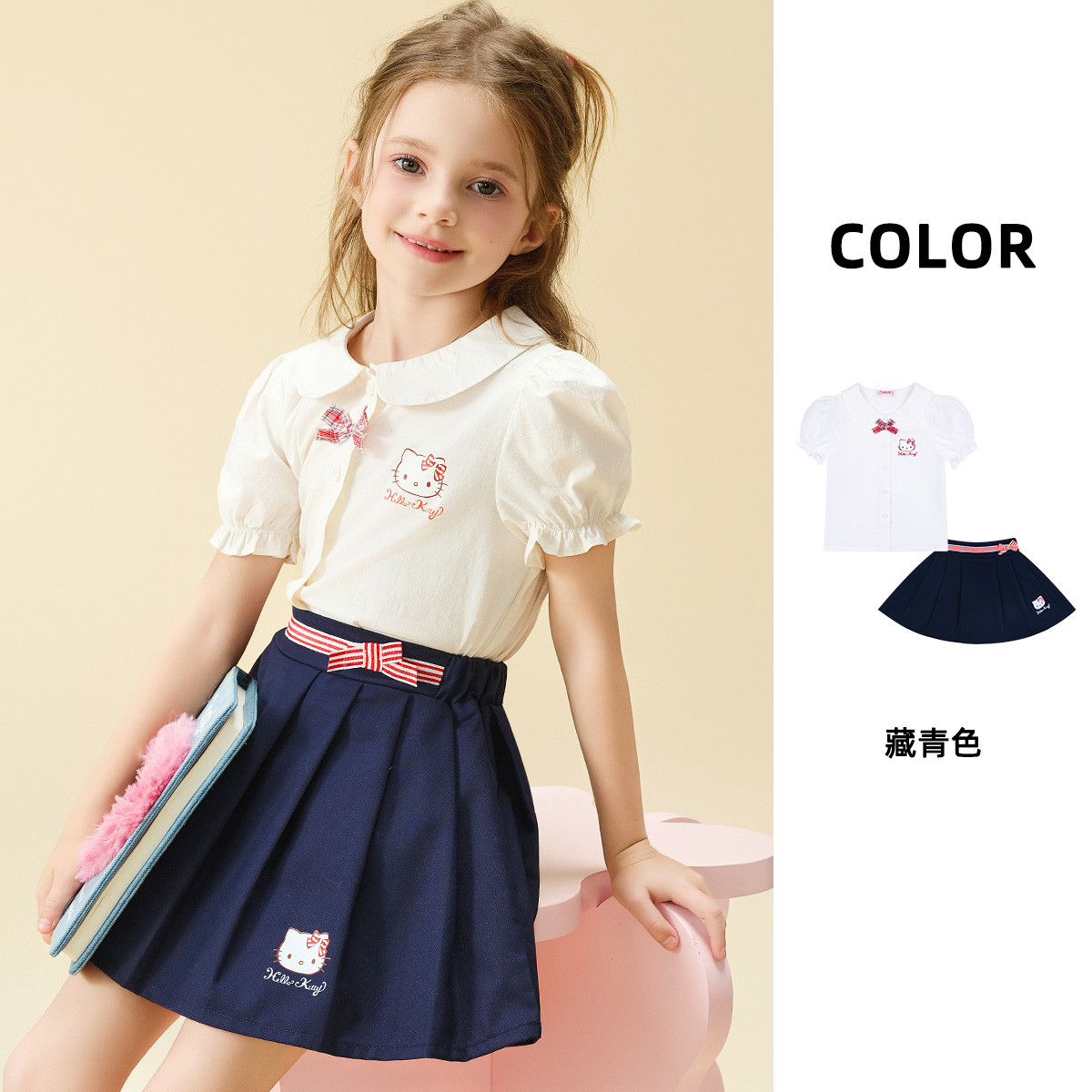 【学院风两件套】女童夏季亲子套装2025款灯笼袖上衣+百褶裙 449054
