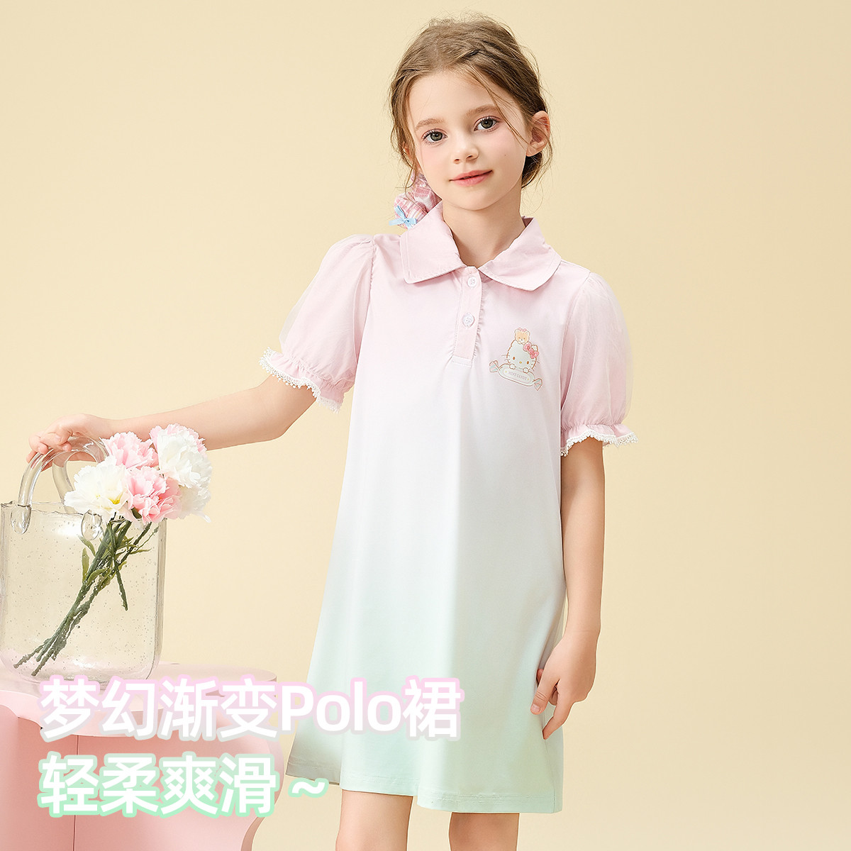 【渐变色连衣裙】女童夏季花边泡泡袖中长款裙子中大童POLO裙 444958