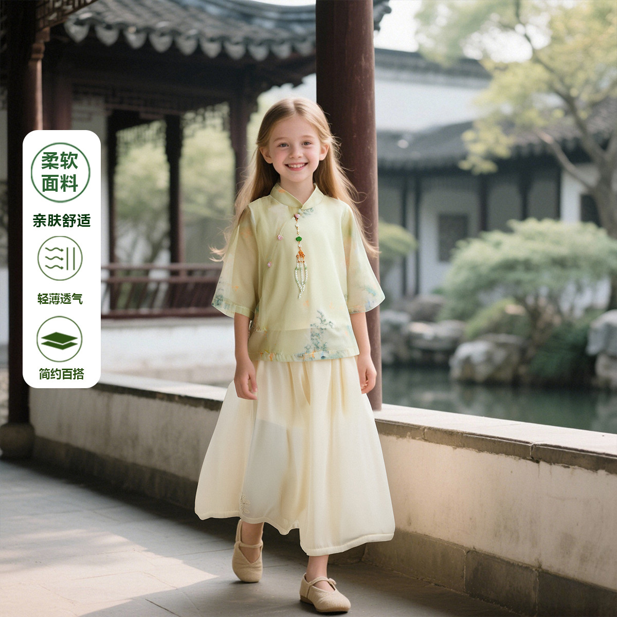 【国风夏季女童套装】中大儿童童装女孩新中式两件套轻薄透气甜美 779679