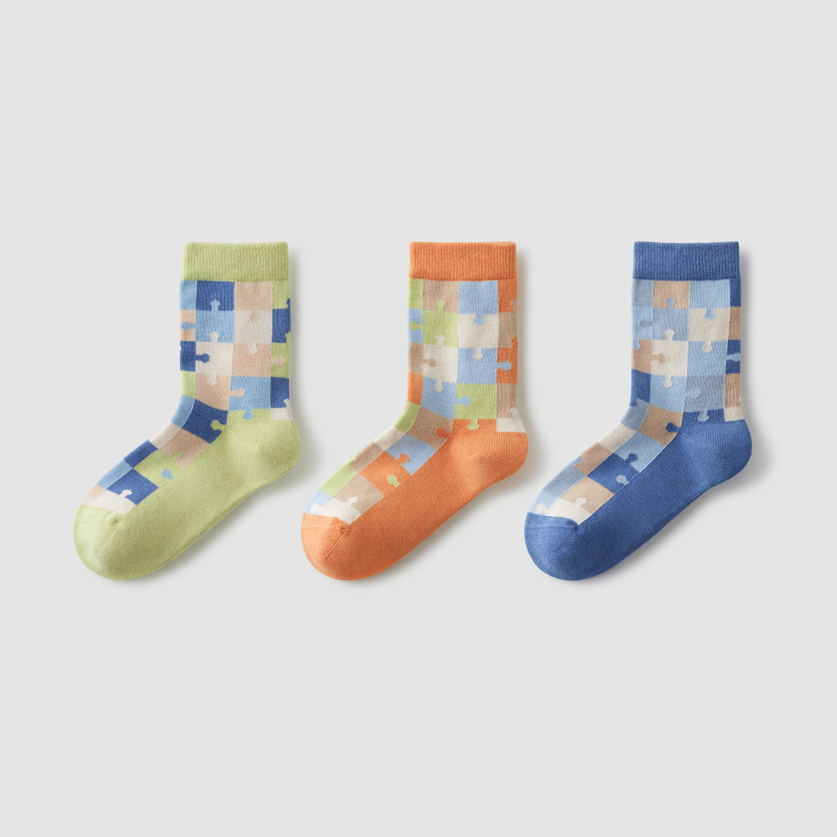 无尺码袜儿童袜子春秋棉袜子薄款透气男童女童大童简约弹力五双装 971077