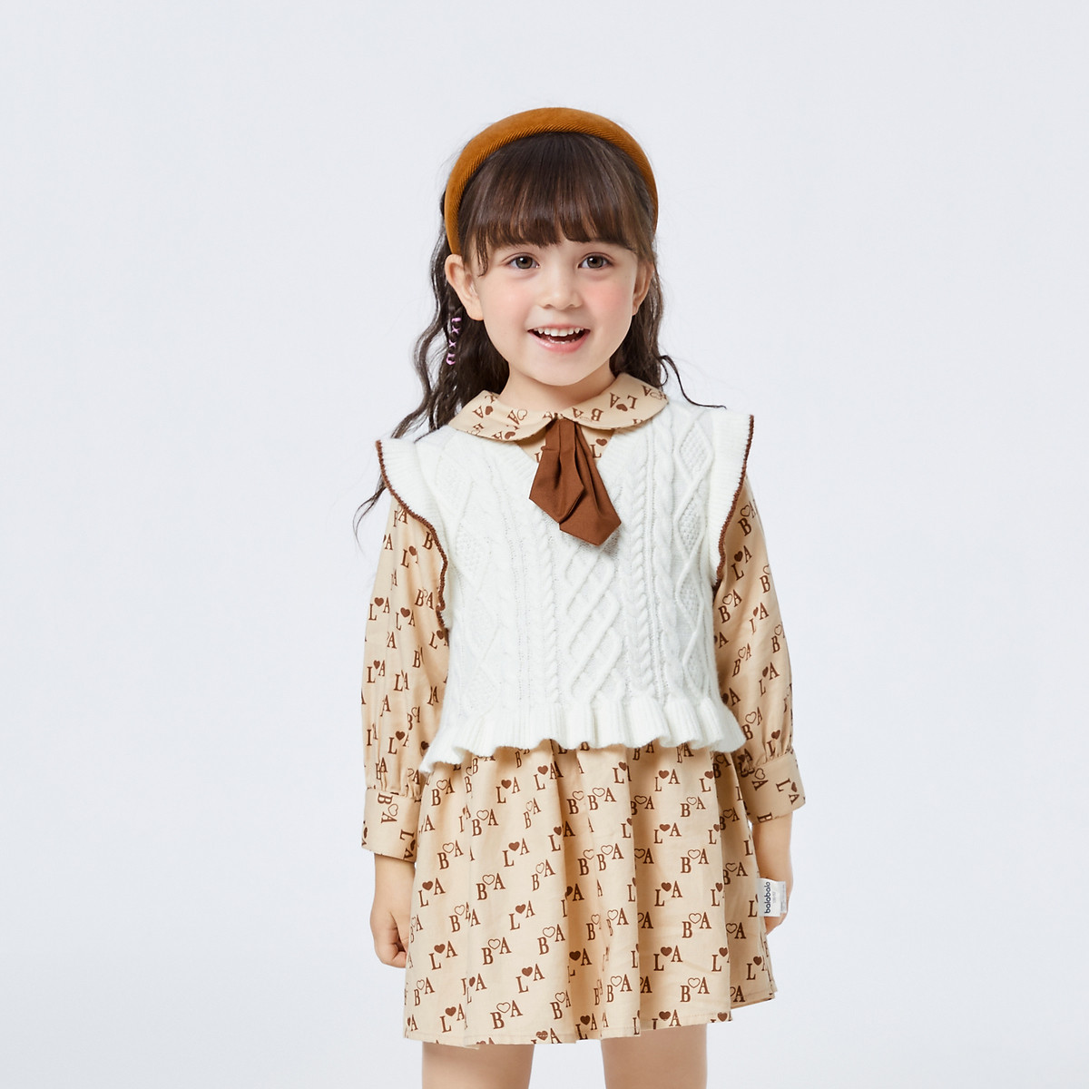 碎花连衣裙两件套毛衣女童小童春秋装儿童长袖套装荷叶边文艺风 198085