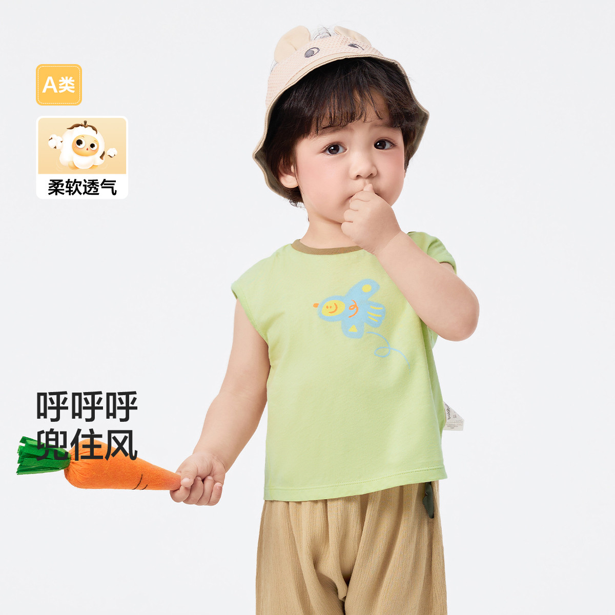 透气婴儿背心儿童t恤短袖男童夏季薄款婴幼儿女童外穿柔软上衣 584965