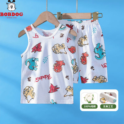巴布豆 全棉无袖背心套装 恐龙彩 100码