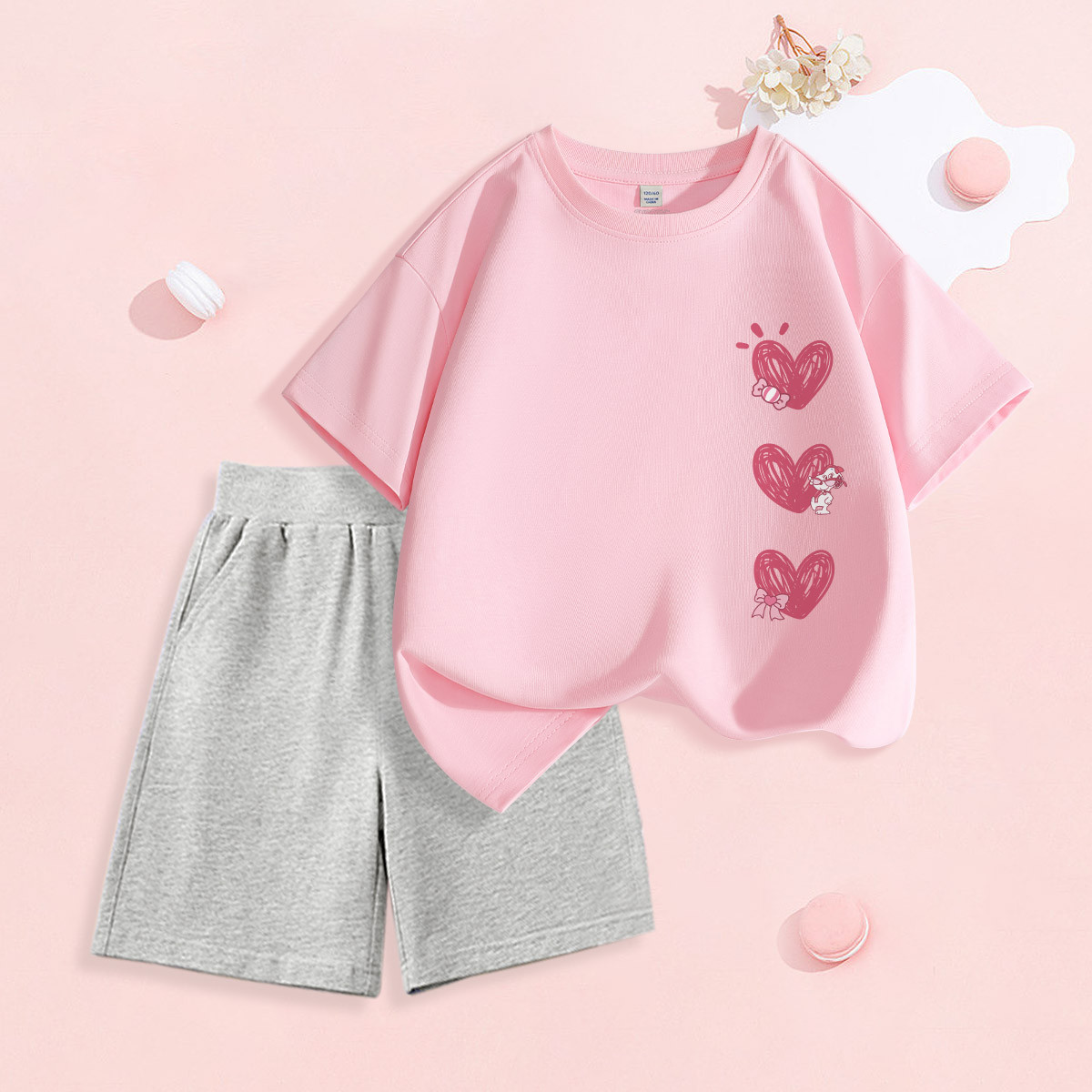 童装女童套装25年夏季纯棉短袖t恤女大童运动短裤儿童两件套 849631