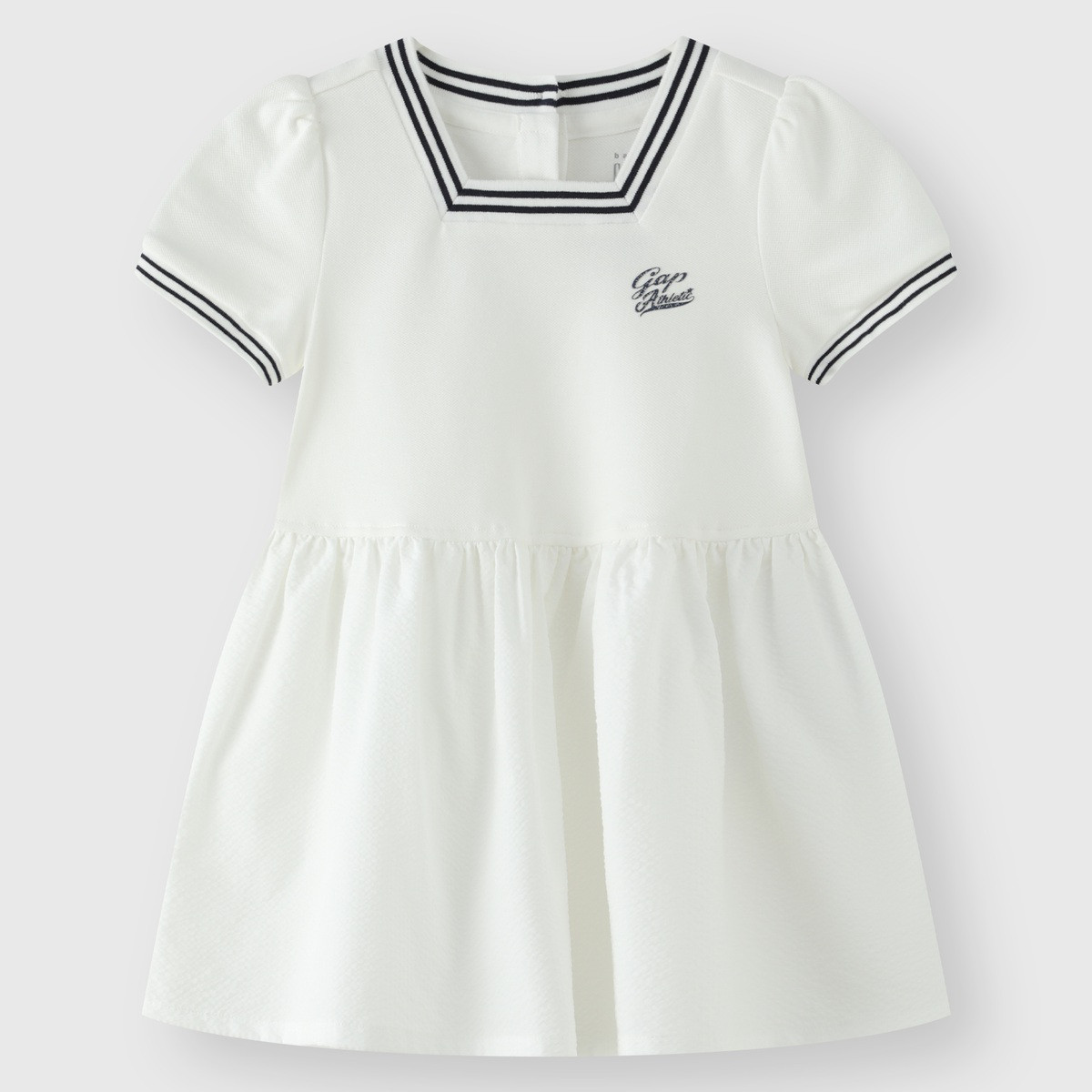 Gap女幼童2024春秋季条纹花边娃娃领泡泡袖连衣裙儿童装545410 453338