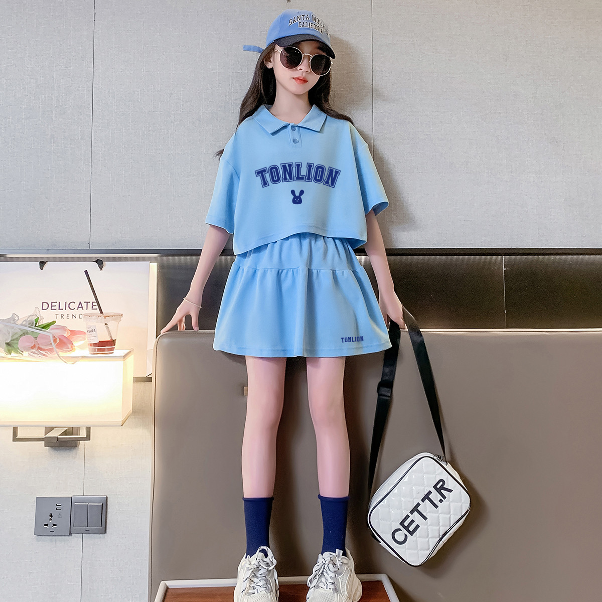 春夏款运动风洋气女童套装儿童中大童休闲短袖套装加裙子两件套装 787855