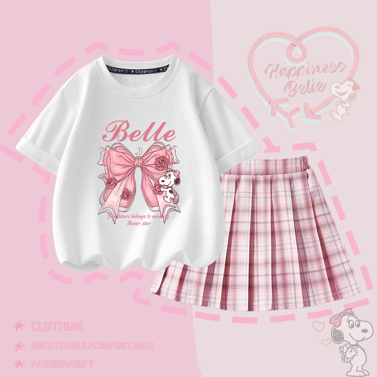 巴布豆 儿童夏款套装 粉色 100码