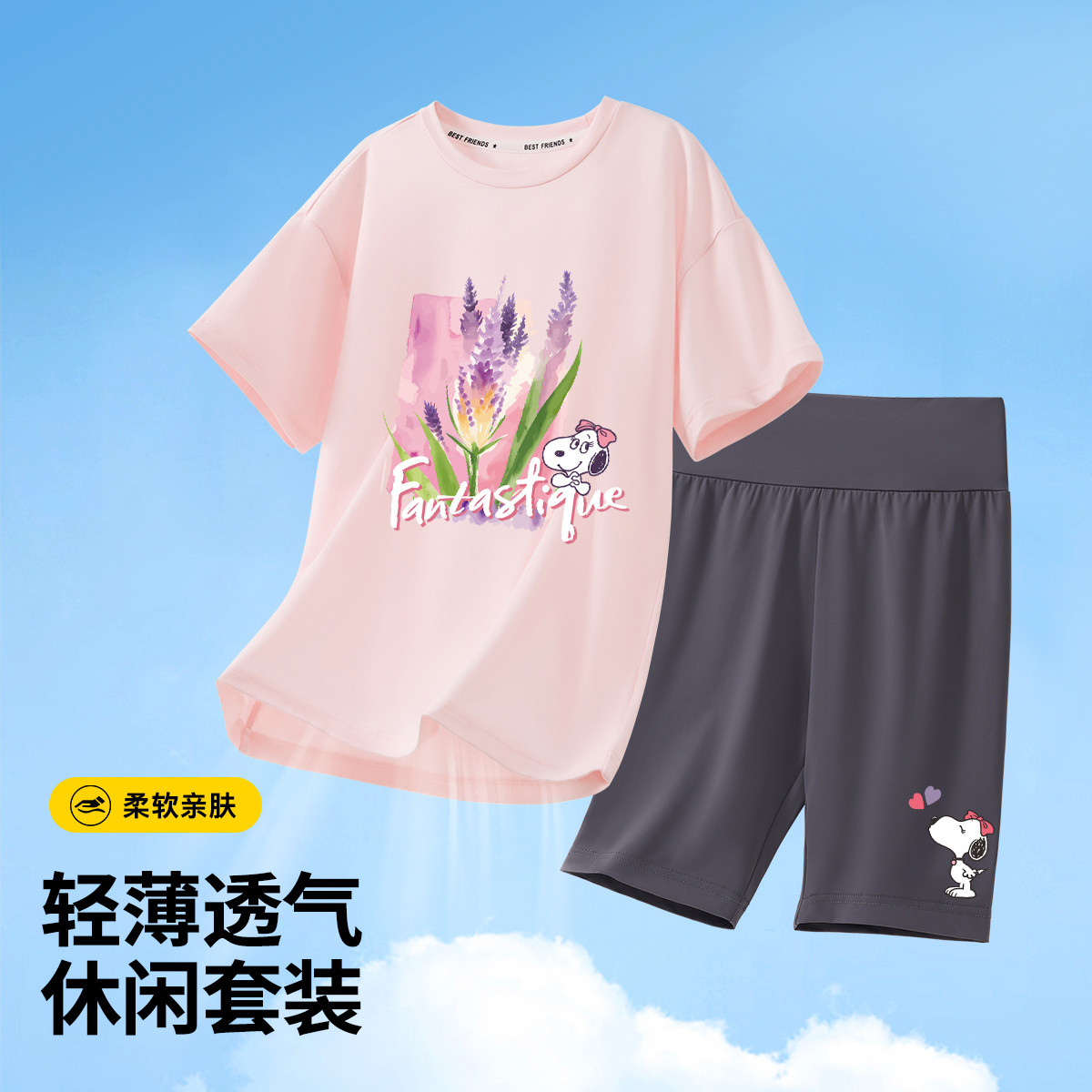 巴布豆 儿童夏款套装 粉色 100码