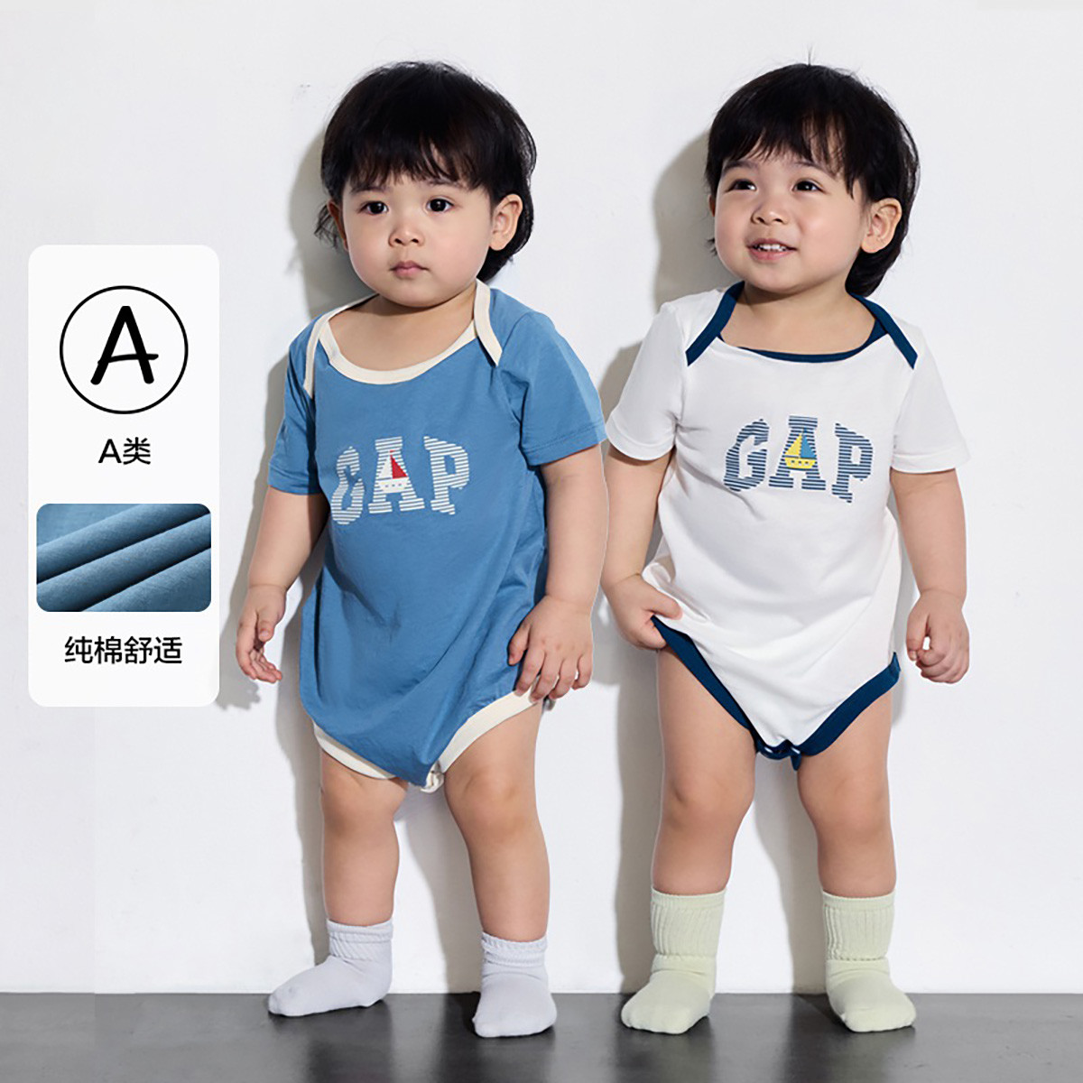 Gap婴儿2024春秋季纯棉撞色短袖连体衣儿童装哈衣爬服505556 554138
