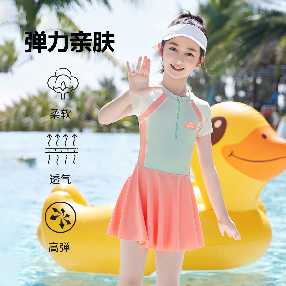 泳衣女童舒适亲肤夏季游泳衣可爱连体连衣温泉泳衣海边沙滩游泳衣 592915