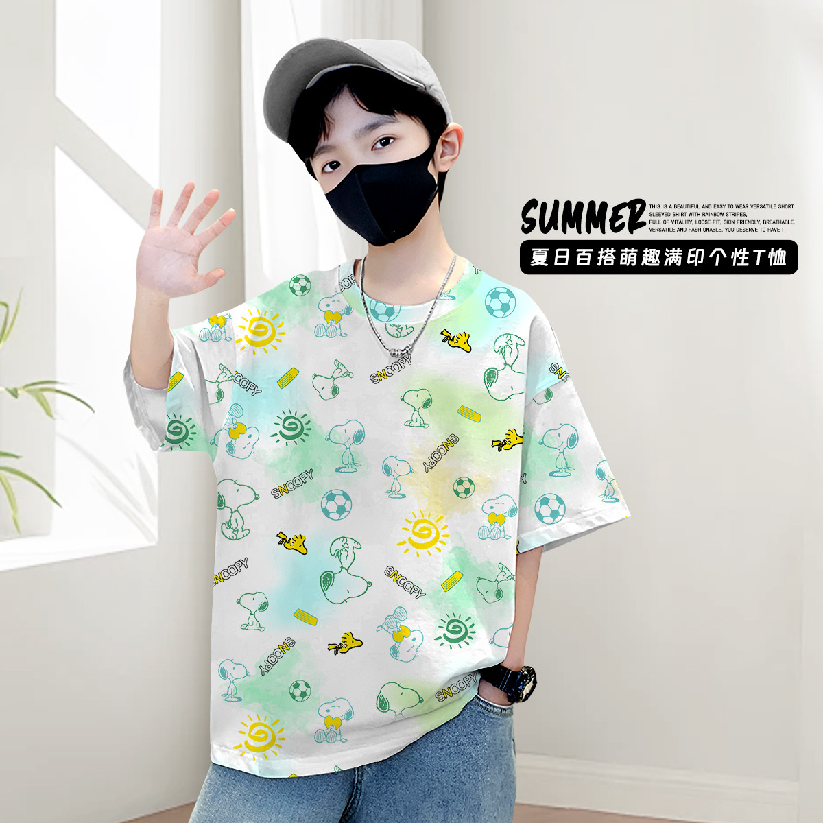 【福利特卖 售空不补】夏季男童满印短袖T恤透气亲肤中大童装 615071