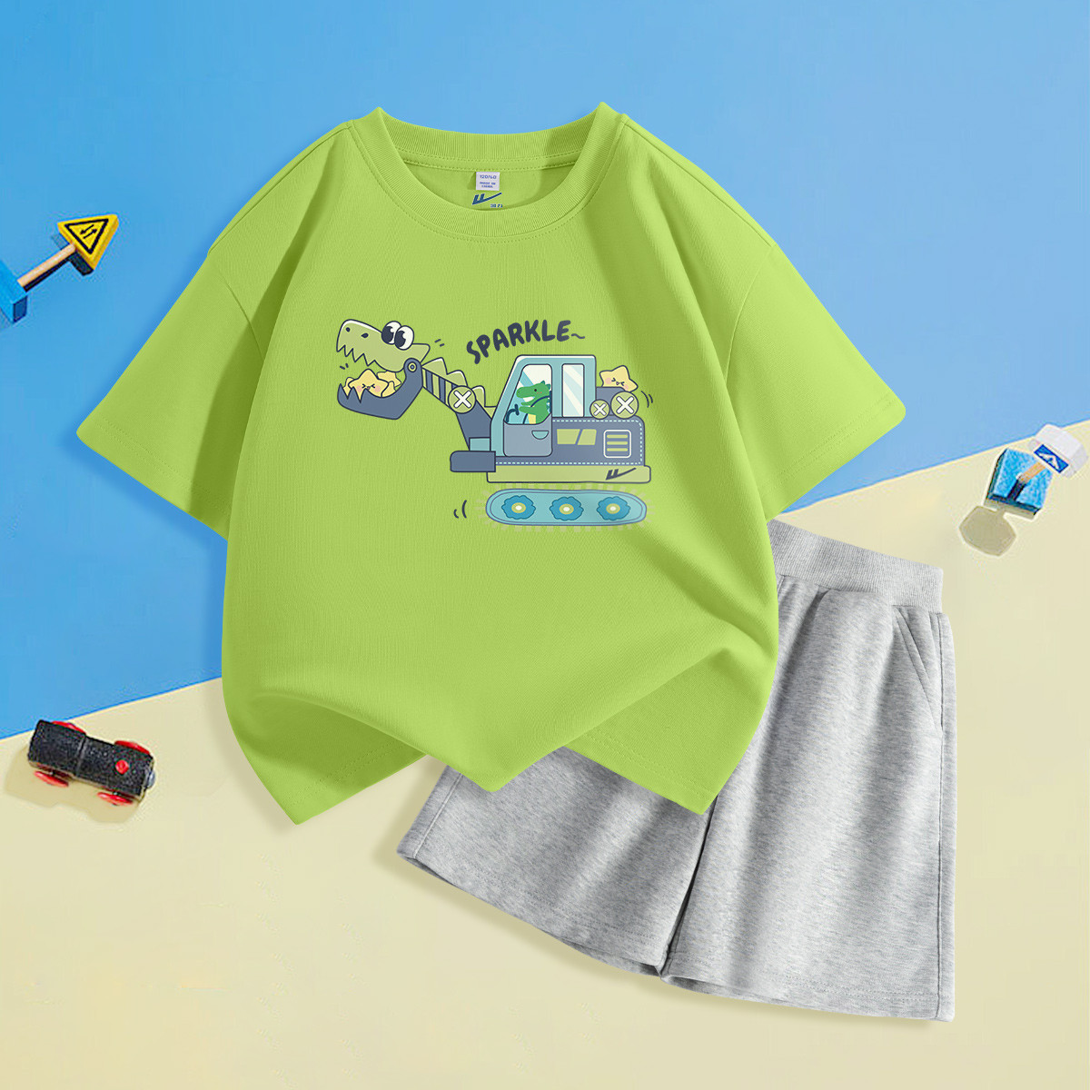 【儿童套装】25年夏季透气小中大童圆领短袖t恤短裤休闲两件套 719775